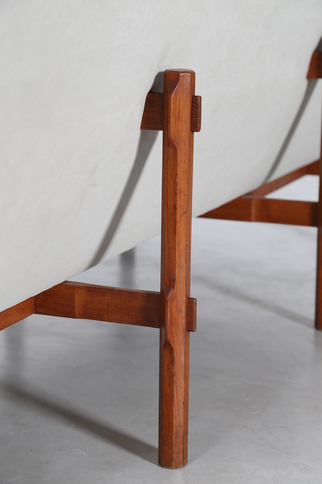 PARISI ICO (1916 - 1996) Divano in legno di teak e tessuto, mod. 869, per Cassina, anni 60. Pubblicazioni; Made in Cassina Giampiero Bosoni ed. Skira Milano 2008 pag. 177; Domus n.385 dicembre 1961, pag. 46; Domus n. 399 febbraio 1963, pag. 105; Arredare n. 2 settembre 1963, p. 36. . -. Cm 215,00 x 84,00 x 81,00. Accompagnato da certificato di autenticità, Archivio Parisi.