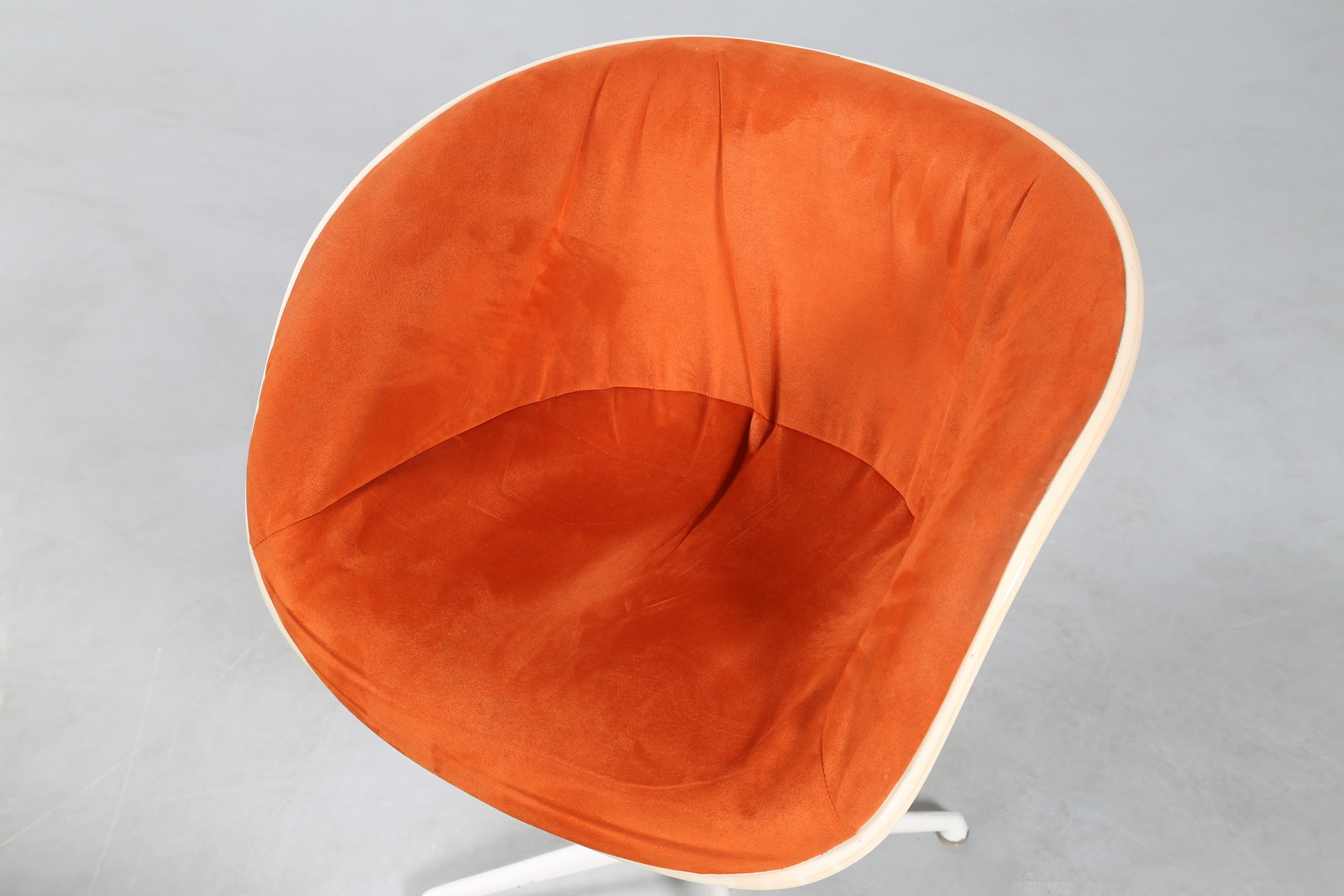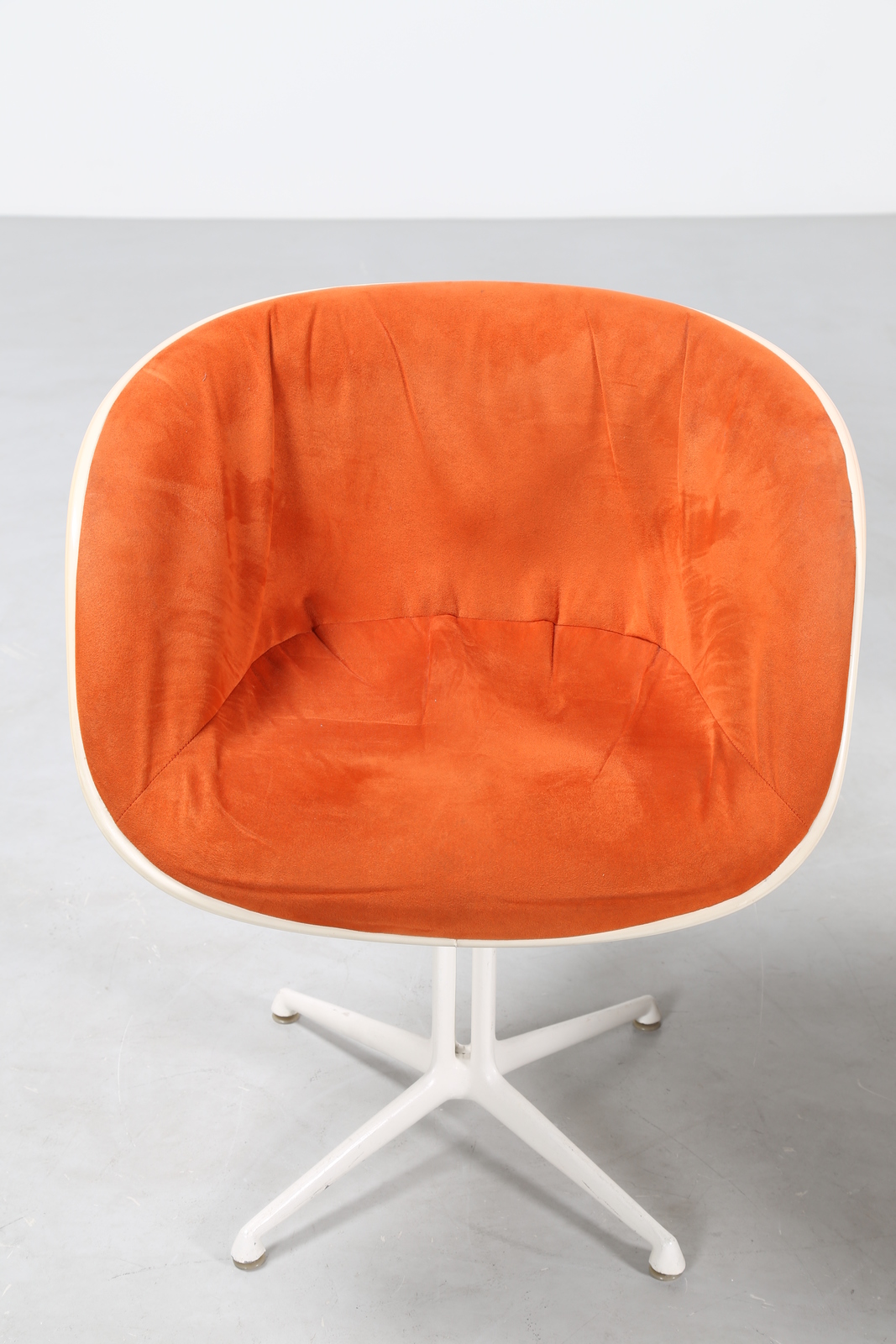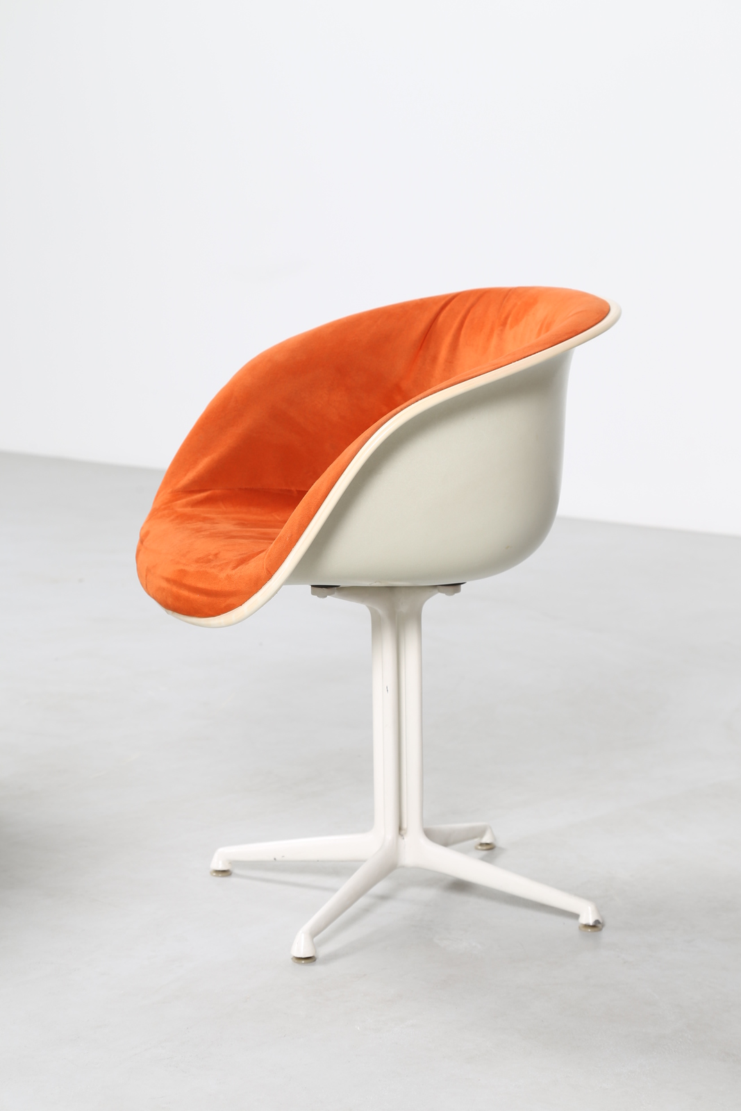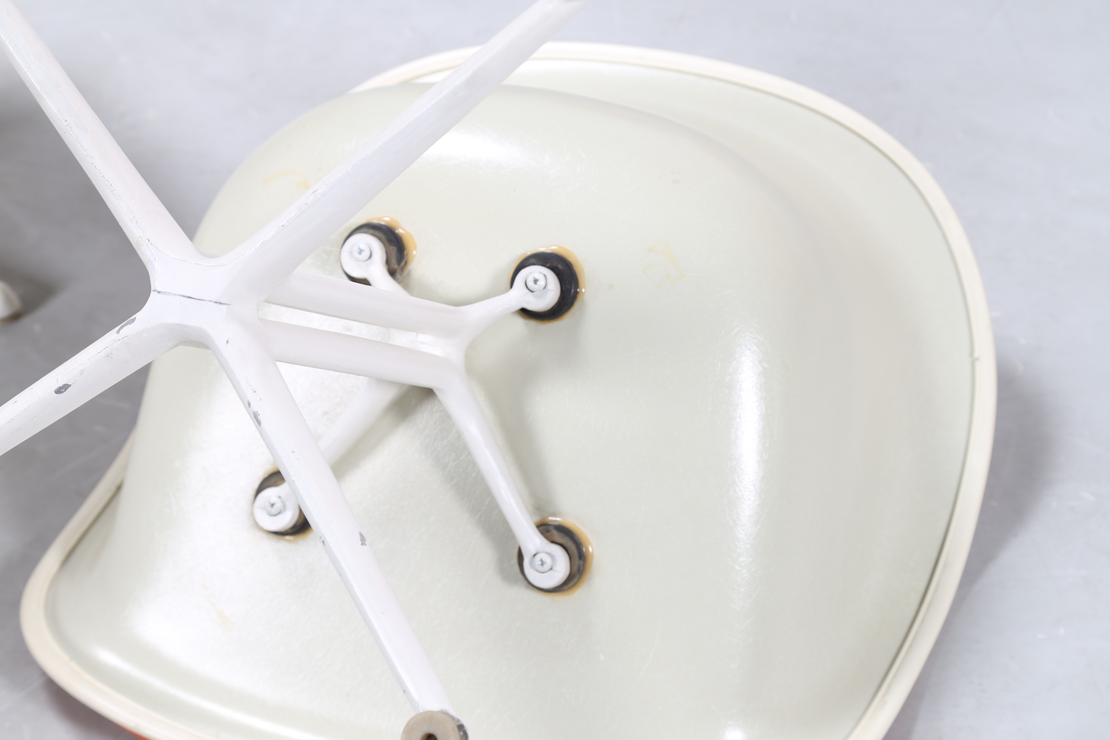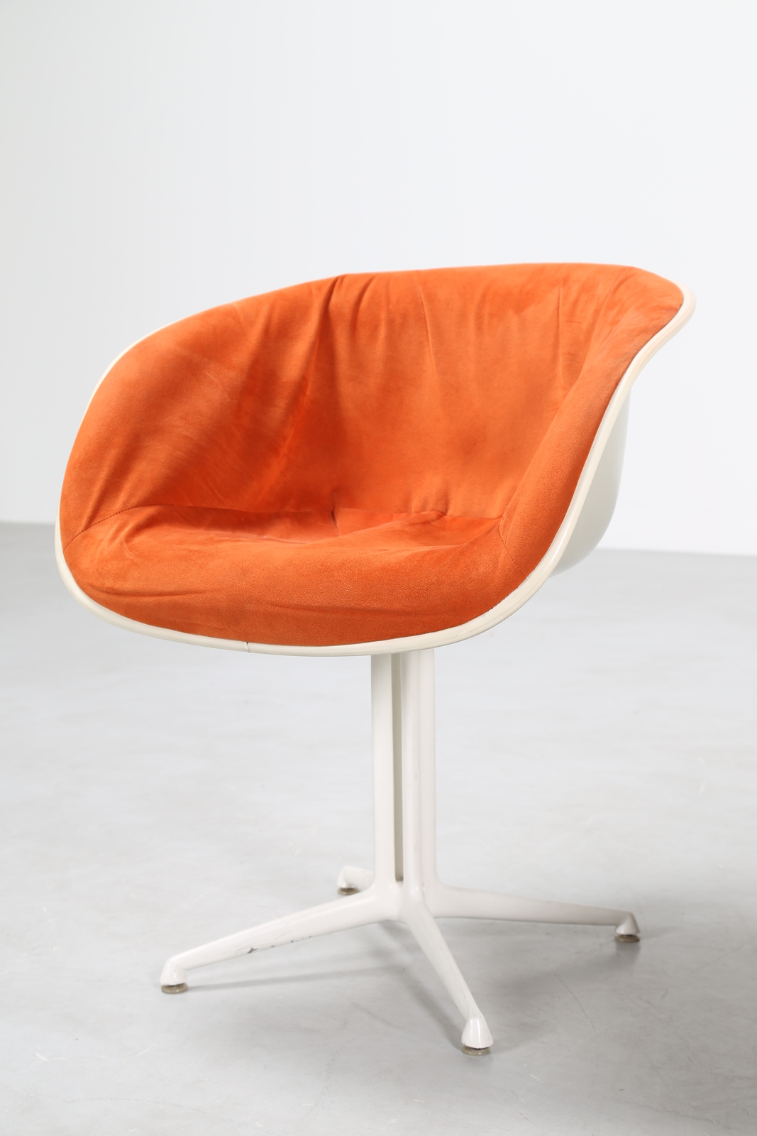 CHARLES & RAY EAMES (1907 - 1978) Dieci poltroncine in acciaio smaltato, seduta stampata in fibra di vetro e cuscino in tessuto, mod. La Fonda per Herman Miller, Zeeland Michigan, anni 60 . -. Cm 63,00 x 77,00 x 57,00. Etichette presenti