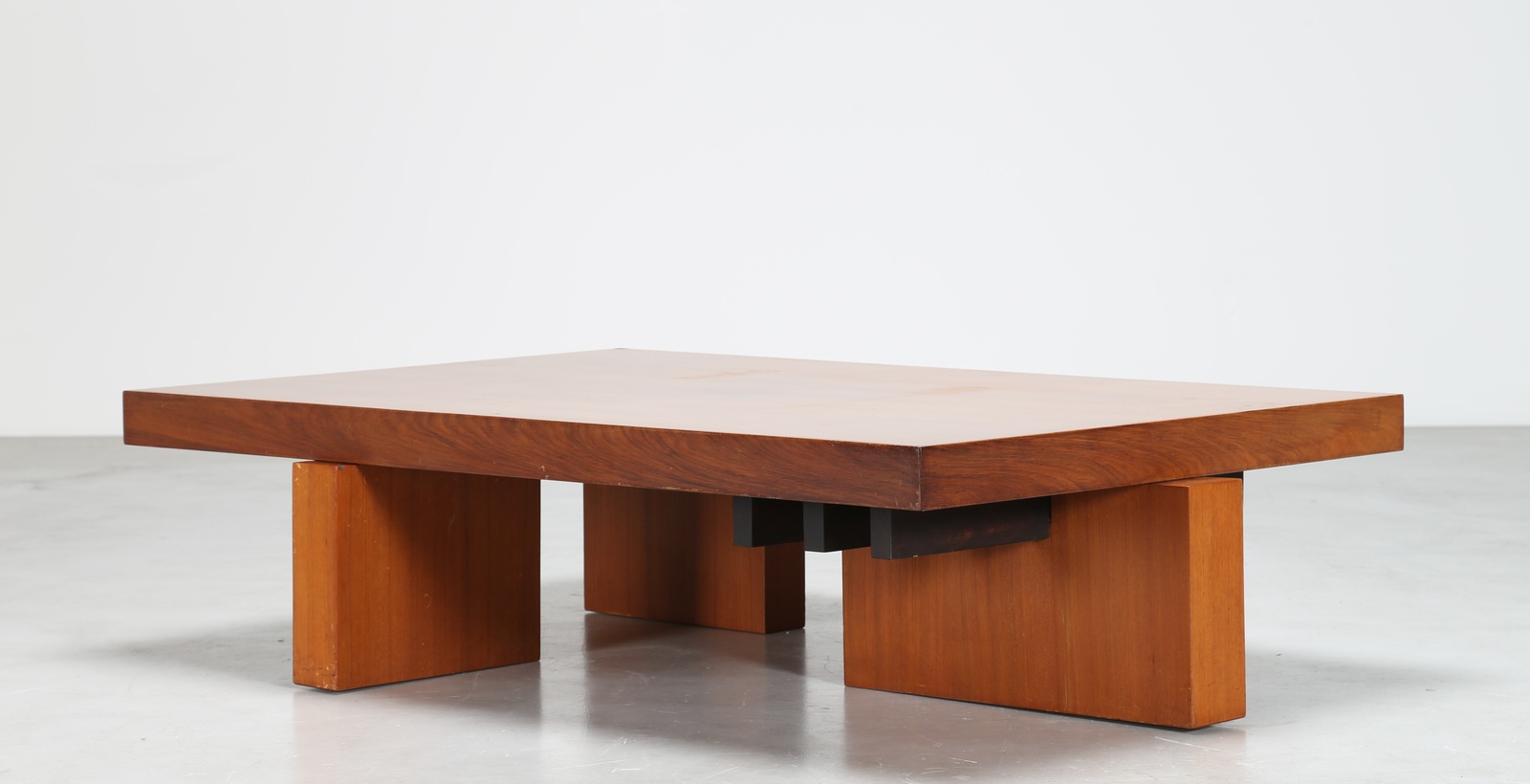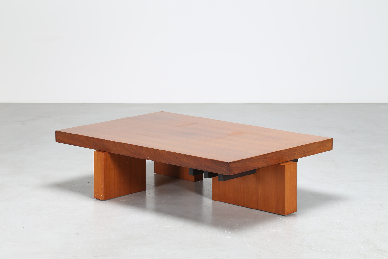 MANIFATTURA ITALIANA Tavolino da caffè in noce, anni 70. -. Cm 135,50 x 33,50 x 90,50.