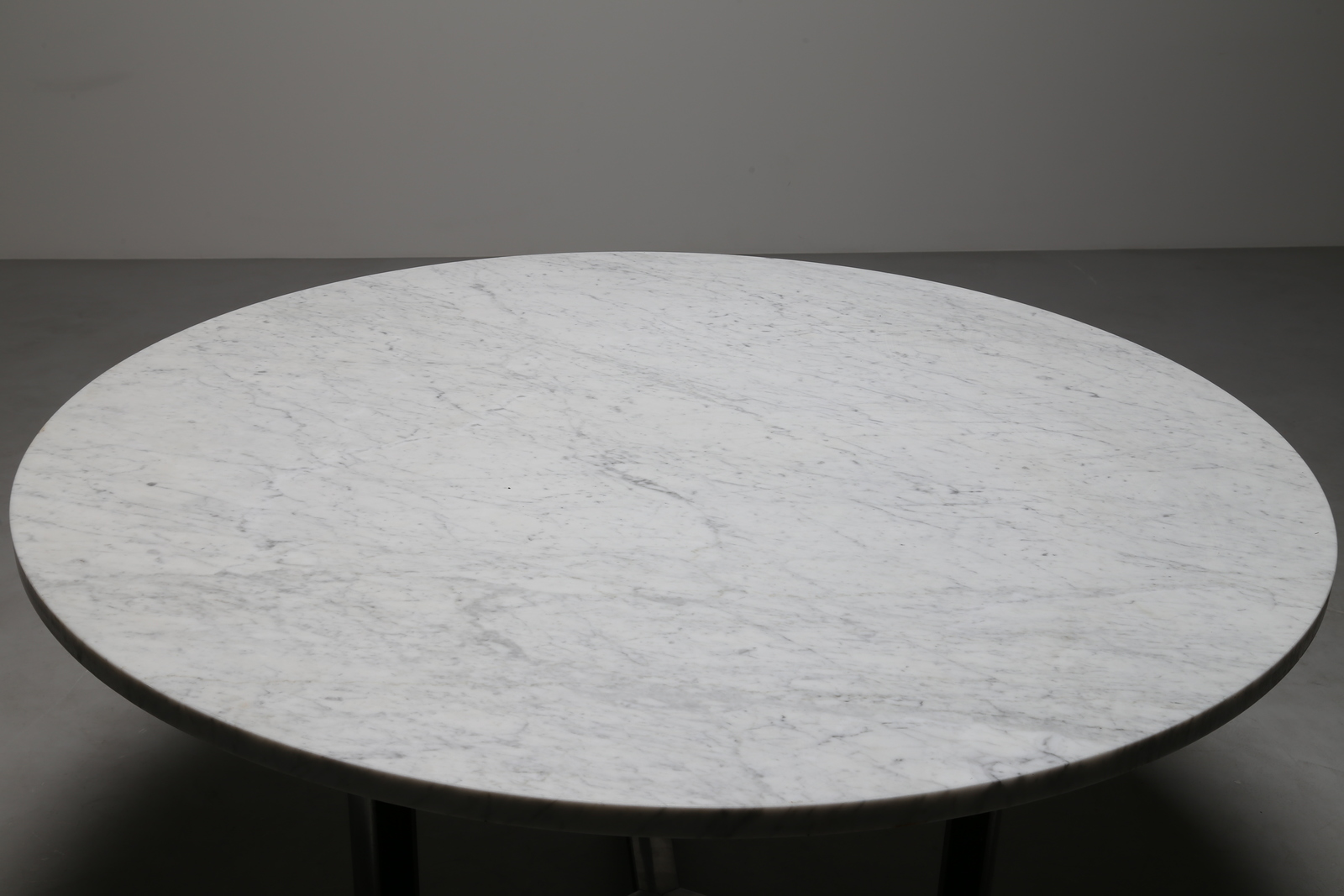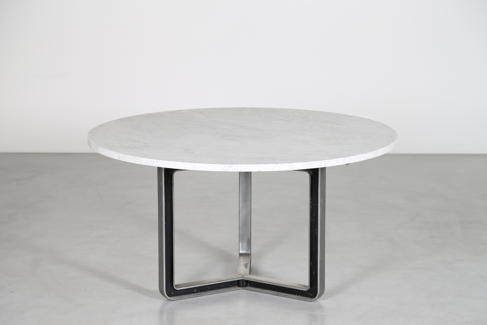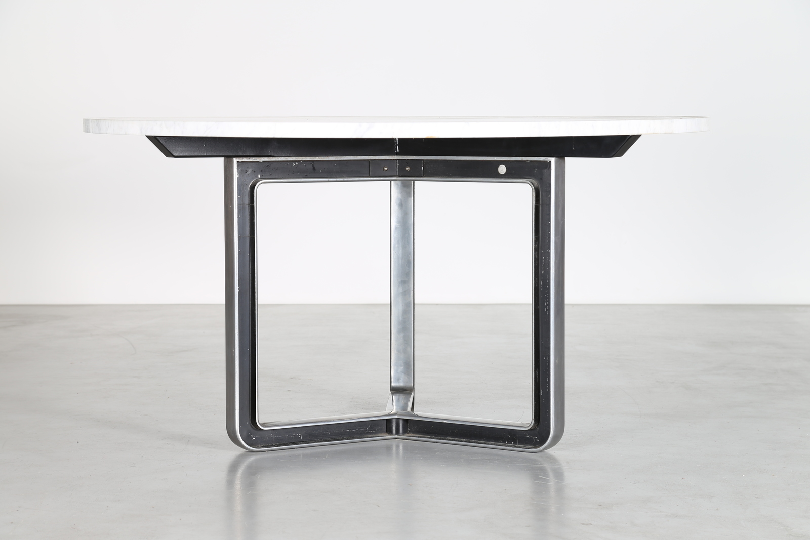 BORSANI OSVALDO (1911 - 1985) Tavolo meeting circolare in alluminio smaltato con piano in marmo, mod. T334, per Centro Progetti Tecno, anni 80. . -. Cm 140,00 x 73,00.