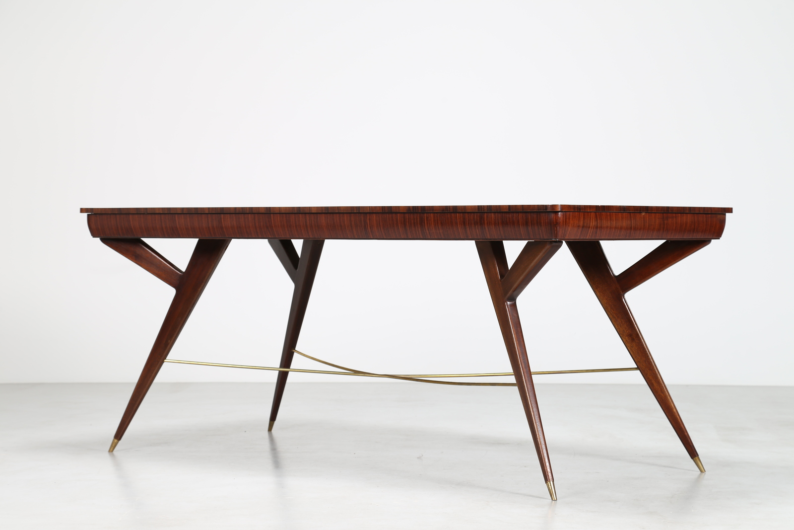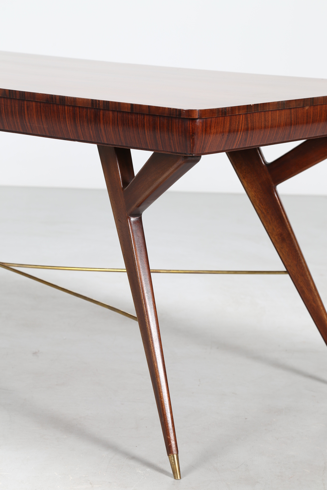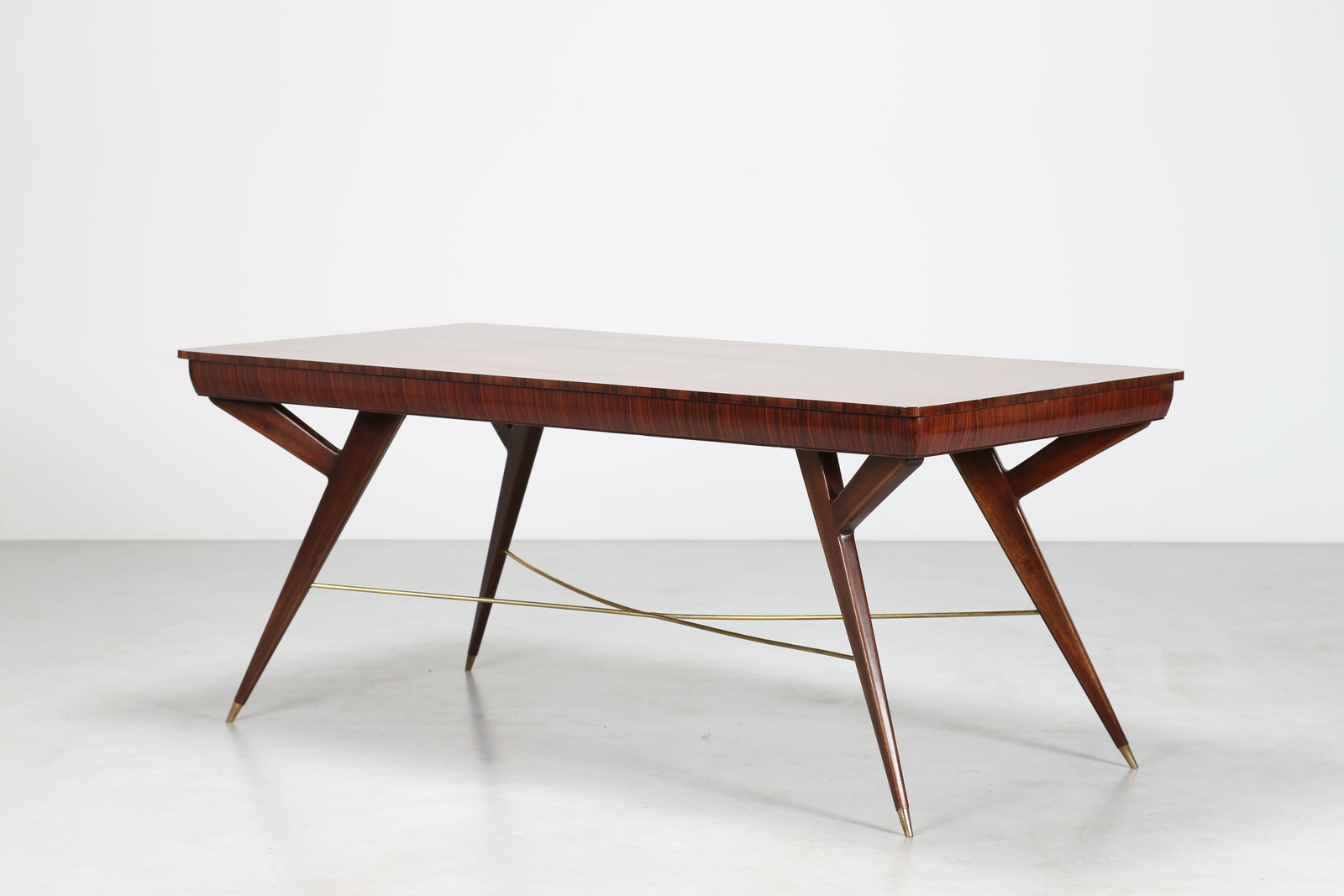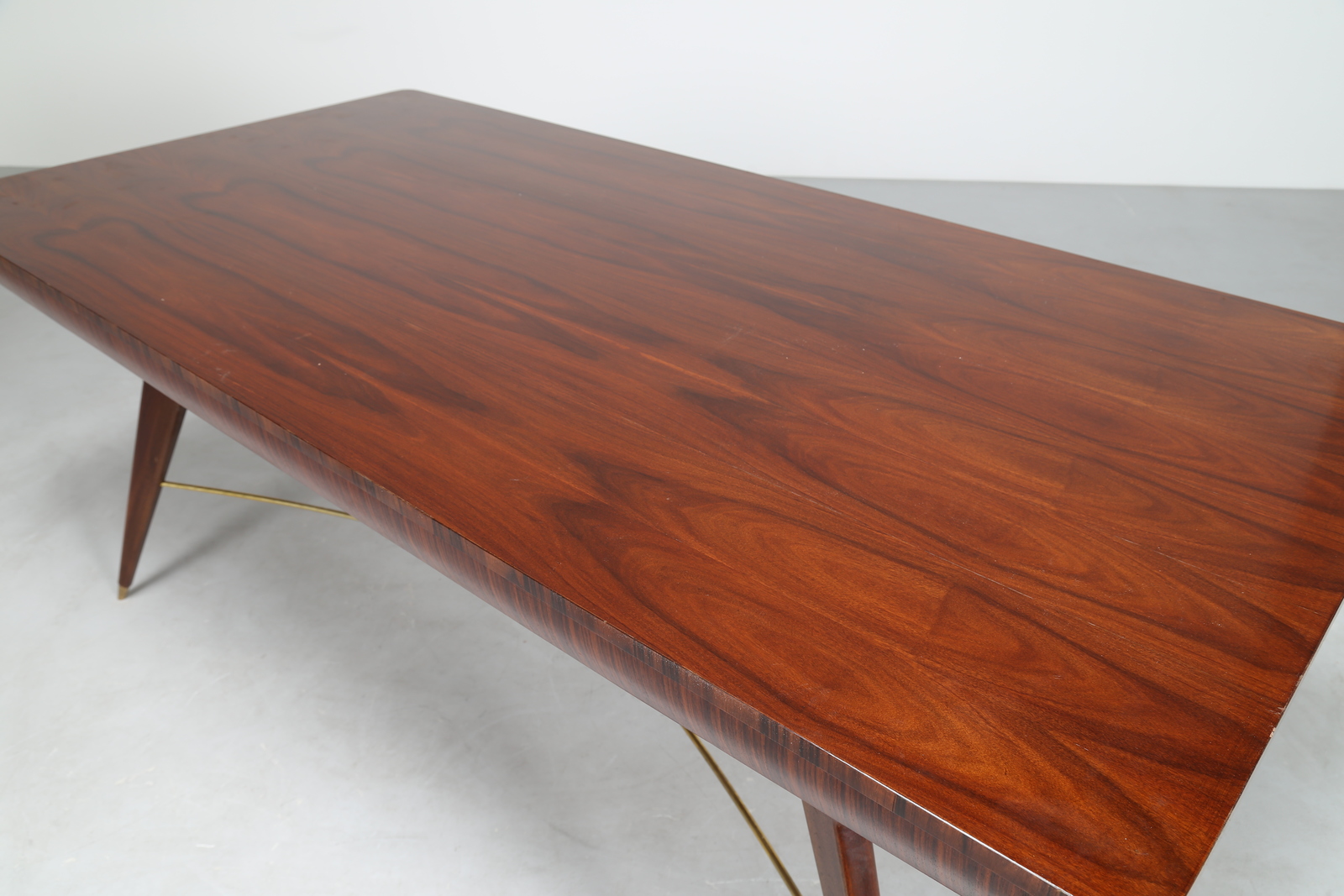 MANIFATTURA ITALIANA Tavolo in palissandro e dettagli in ottone, anni 50. -. Cm 190,50 x 80,50 x 95,00.