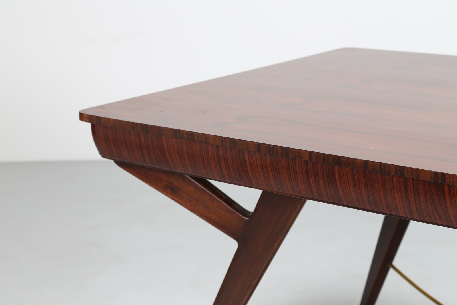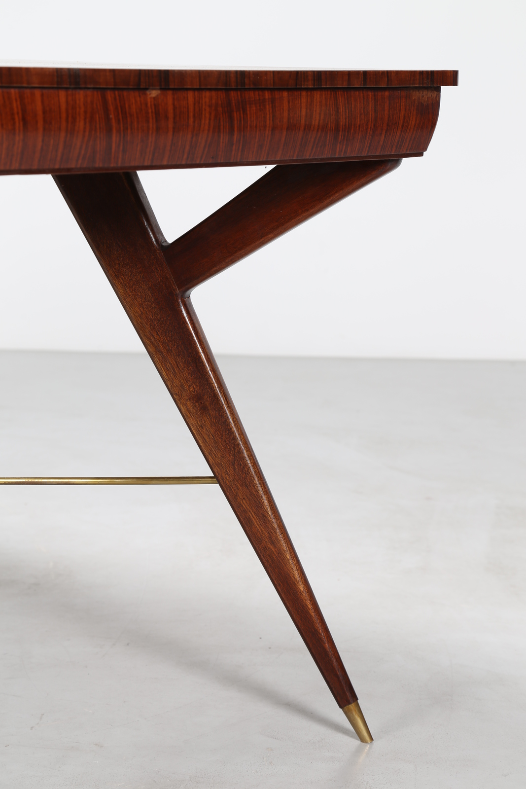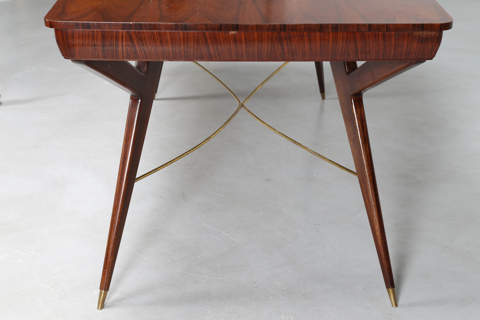 MANIFATTURA ITALIANA Tavolo in palissandro e dettagli in ottone, anni 50. -....