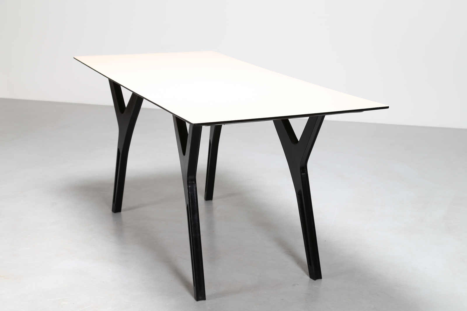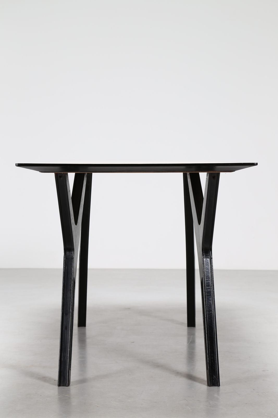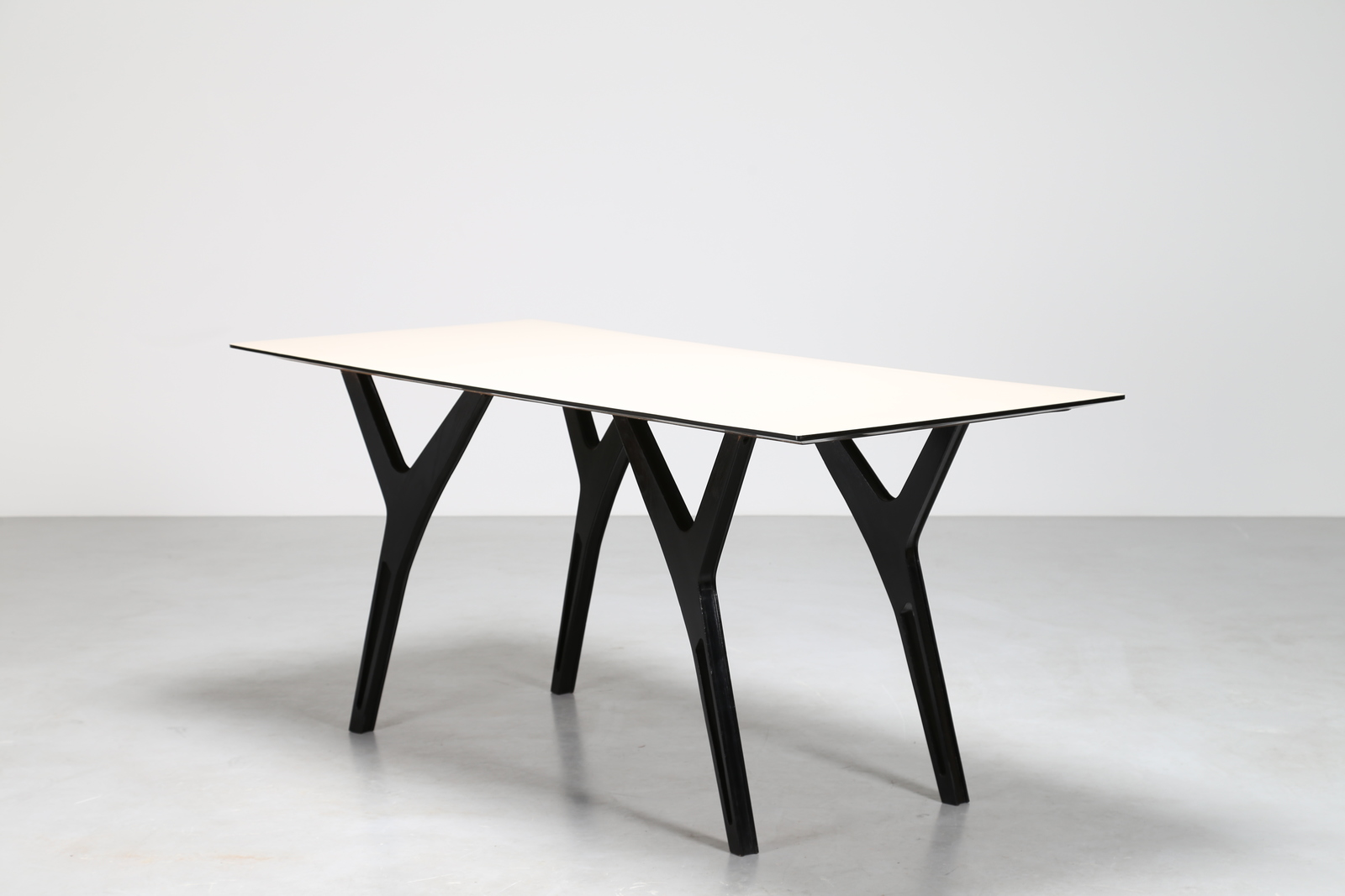 MANIFATTURA ITALIANA Tavolo in legno laccato nero con piano in formica, anni...