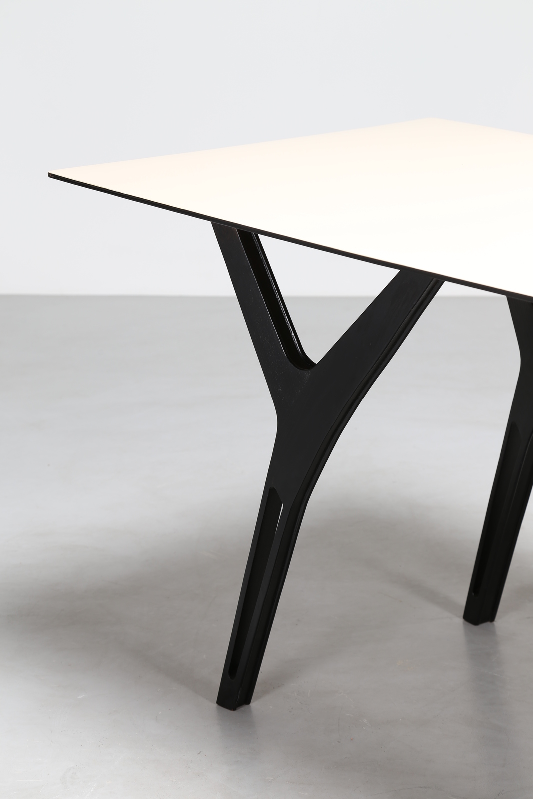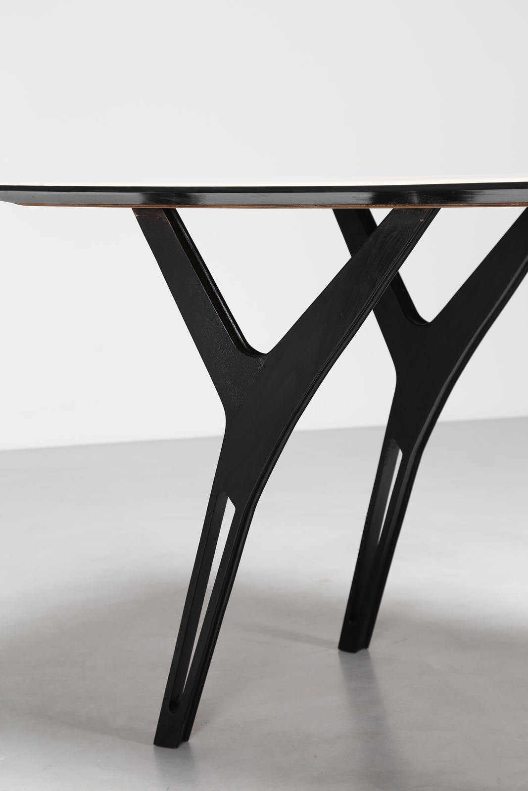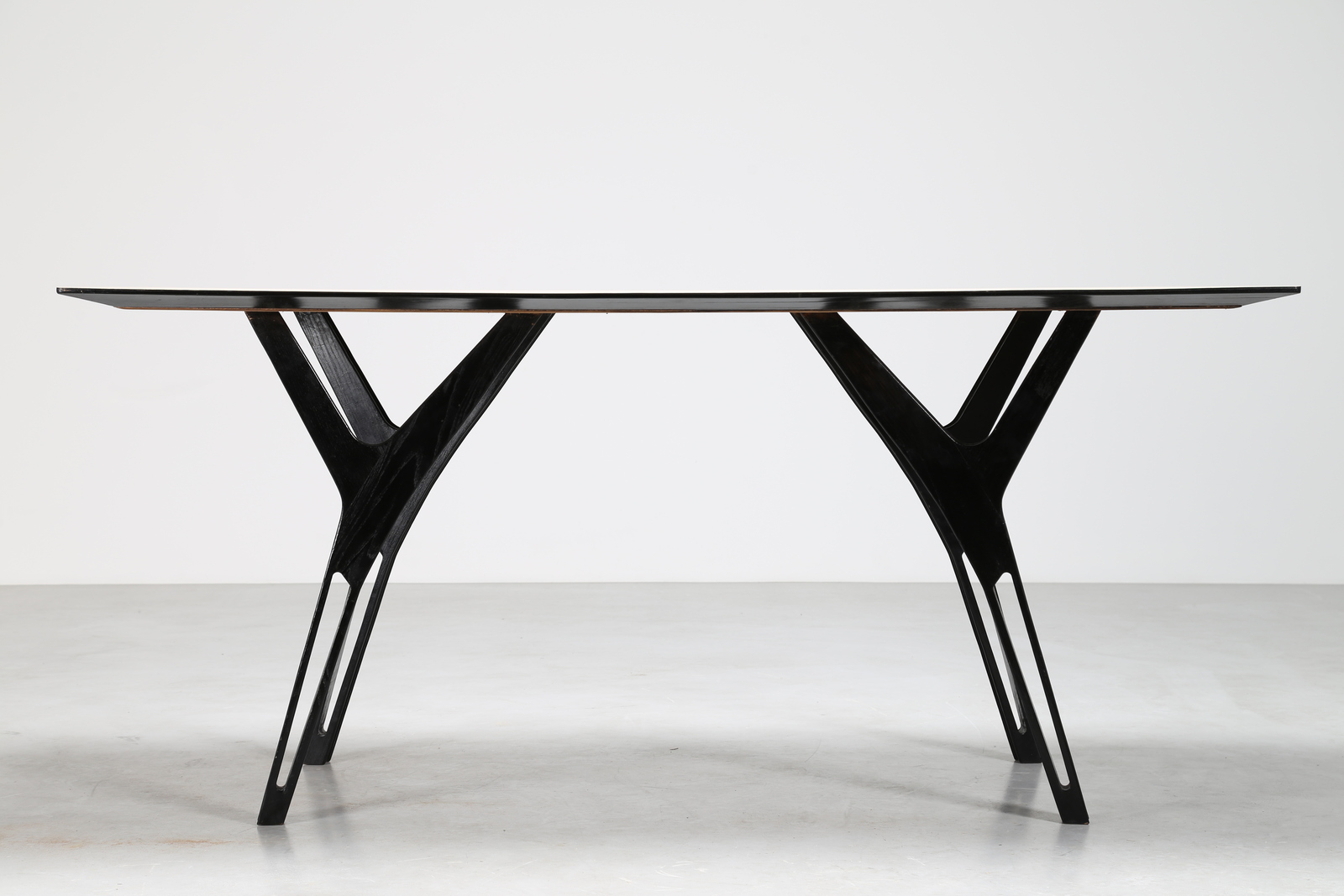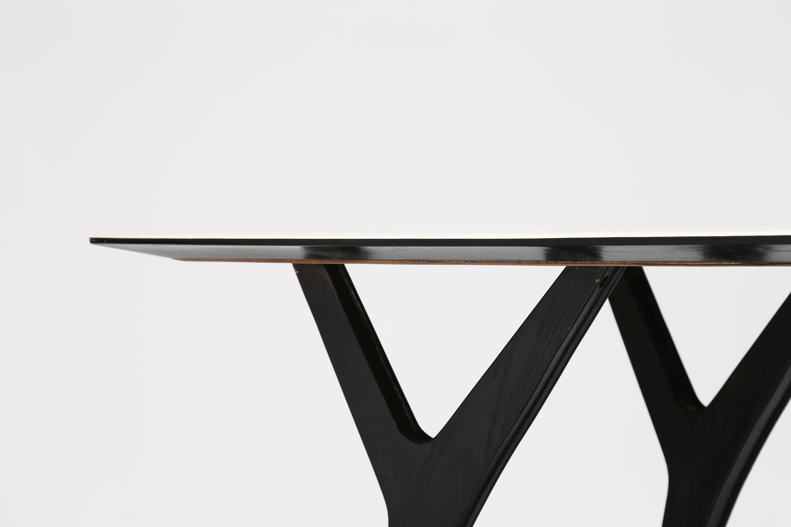 MANIFATTURA ITALIANA Tavolo in legno laccato nero con piano in formica, anni...