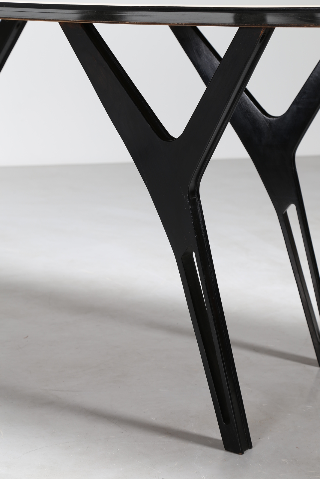 MANIFATTURA ITALIANA Tavolo in legno laccato nero con piano in formica, anni 50. -. Cm 179,00 x 80,00 x 80,00.