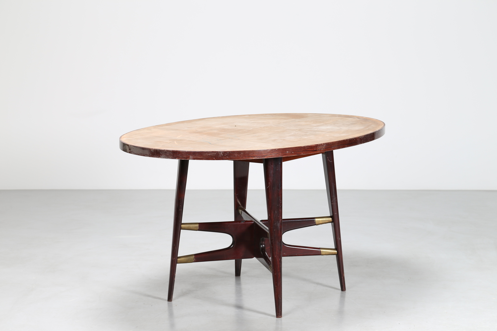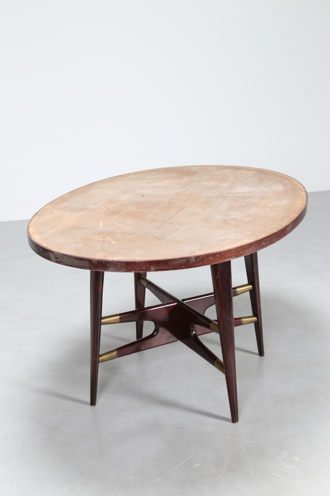 CAVATORTA SILVIO Tavolo in mogano con dettagli in ottone, per Cavatorta Mobili, anni 50. -. Cm 158,00 x 80,00 x 105,00.