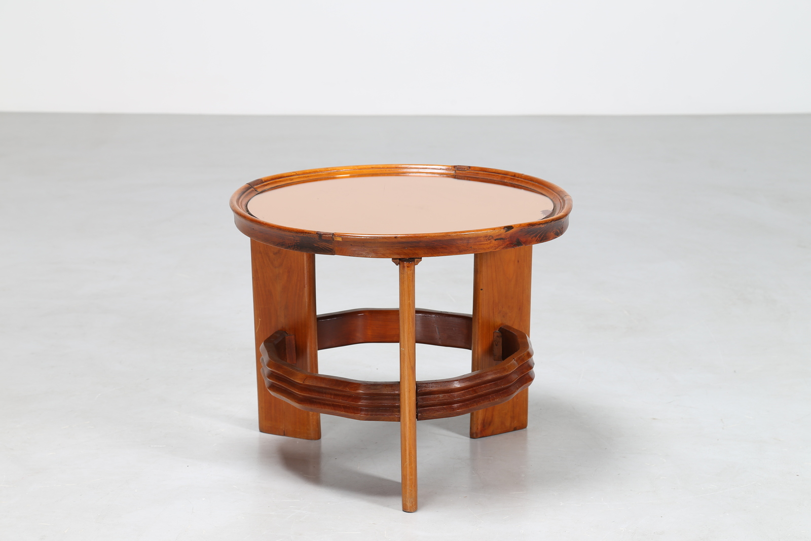VALABREGA VITTORIO Tavolino da caffè rotondo in legno con piano in vetro rosa, anni 40. Pubblicazioni; Irene de Guttry e Maria Paola Maino, Il Mobile Deco Italiano, Roma-Bari 1988, pag. 258-261 per altri esempi simili. . . Cm 62,00 x 48,50.