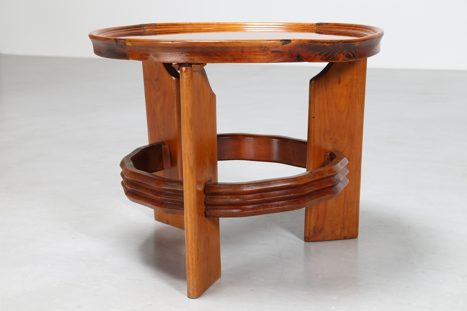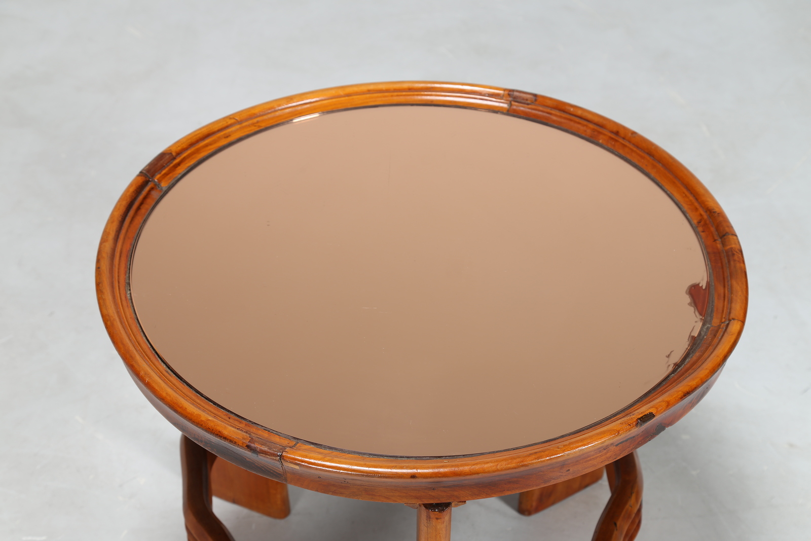 VALABREGA VITTORIO Tavolino da caffè rotondo in legno con piano in vetro...