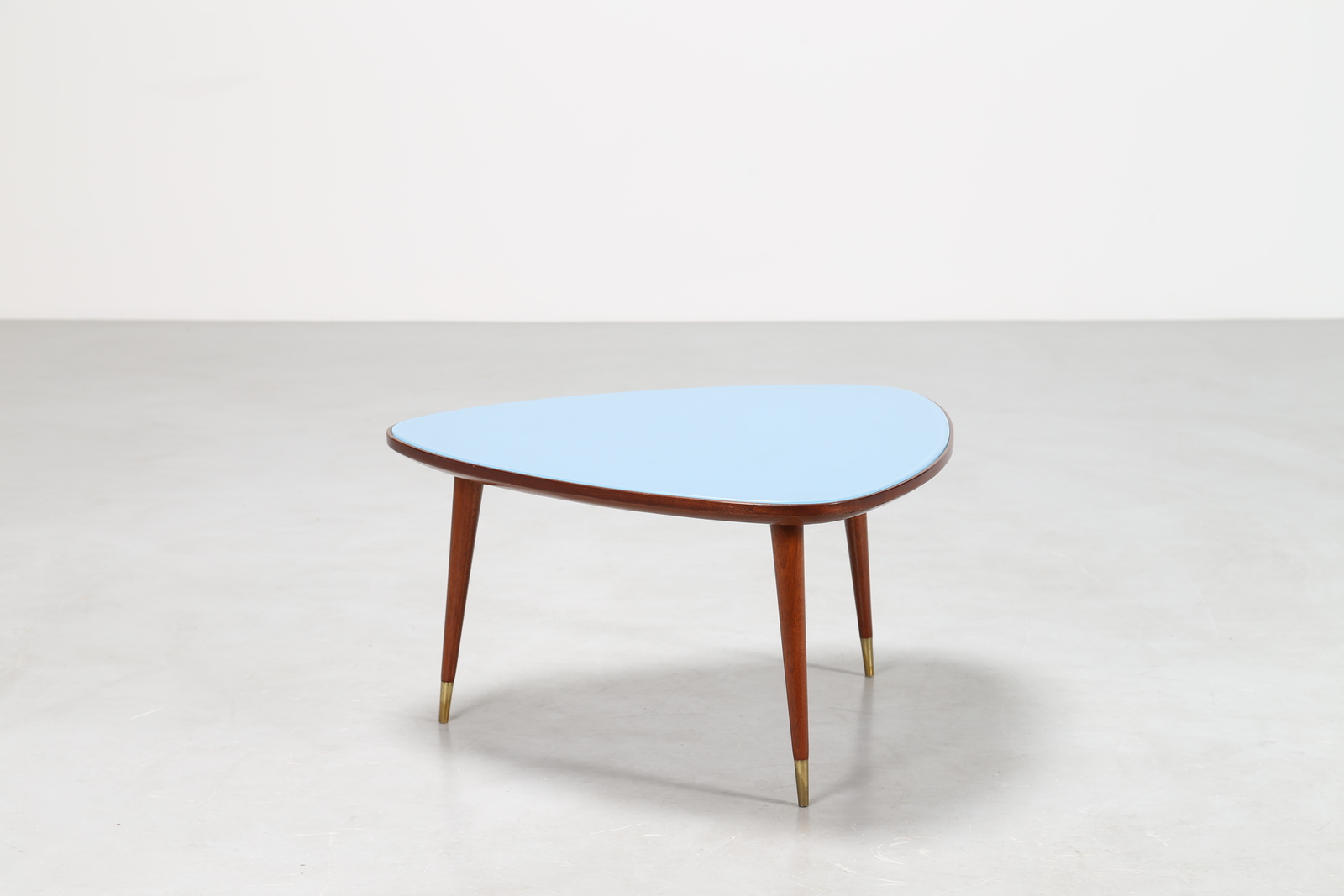 BORSANI OSVALDO (1911 - 1985) Tavolino da caffe in noce con puntali in ottone...