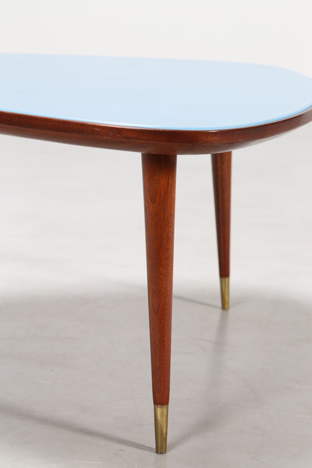 BORSANI OSVALDO (1911 - 1985) Tavolino da caffe in noce con puntali in ottone e piano in vetro, per Tecno, anni 50. -. Cm 82,00 x 42,50 x 80,00.