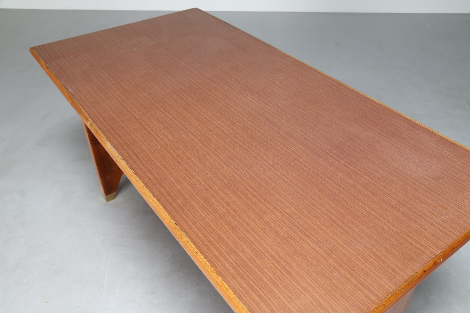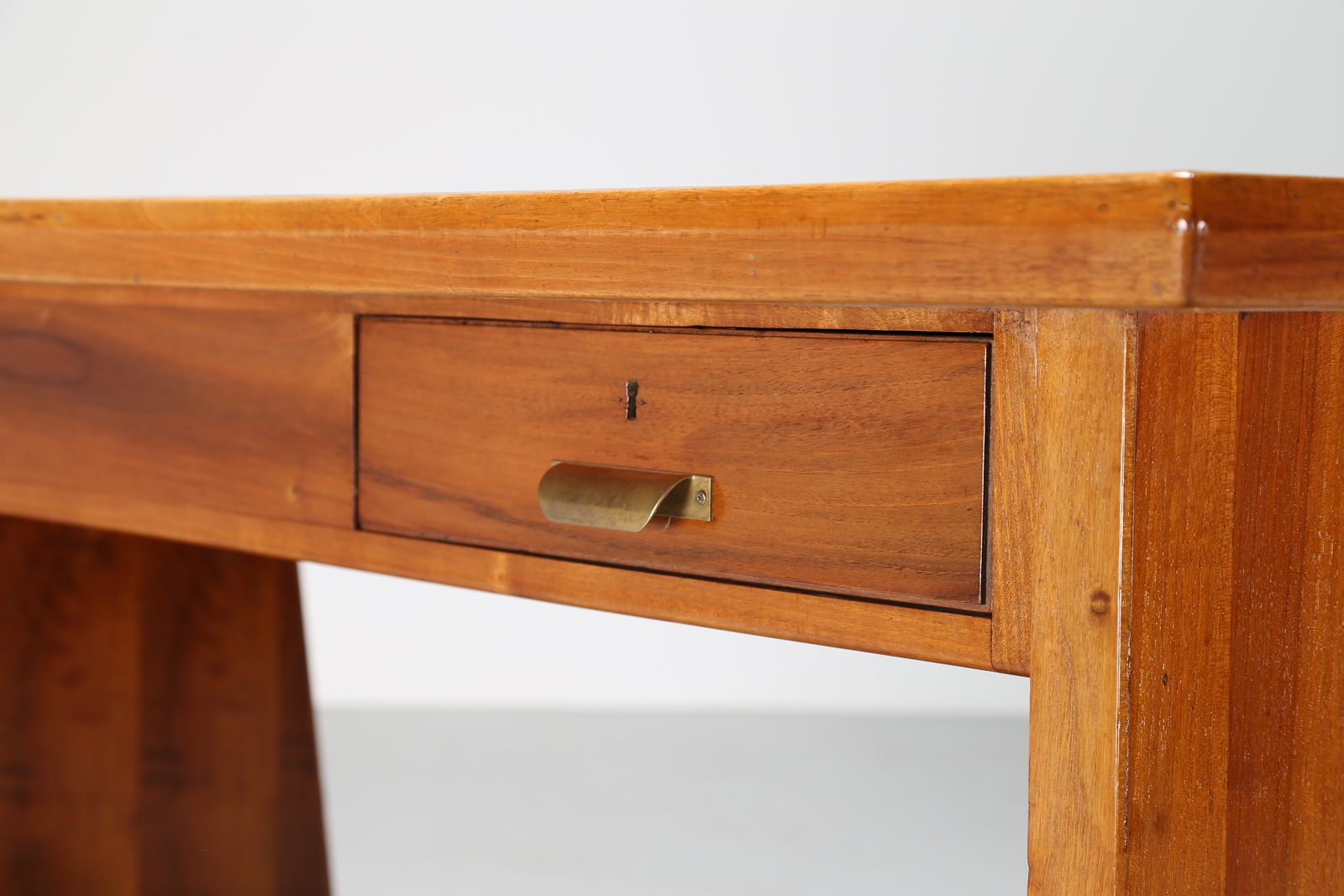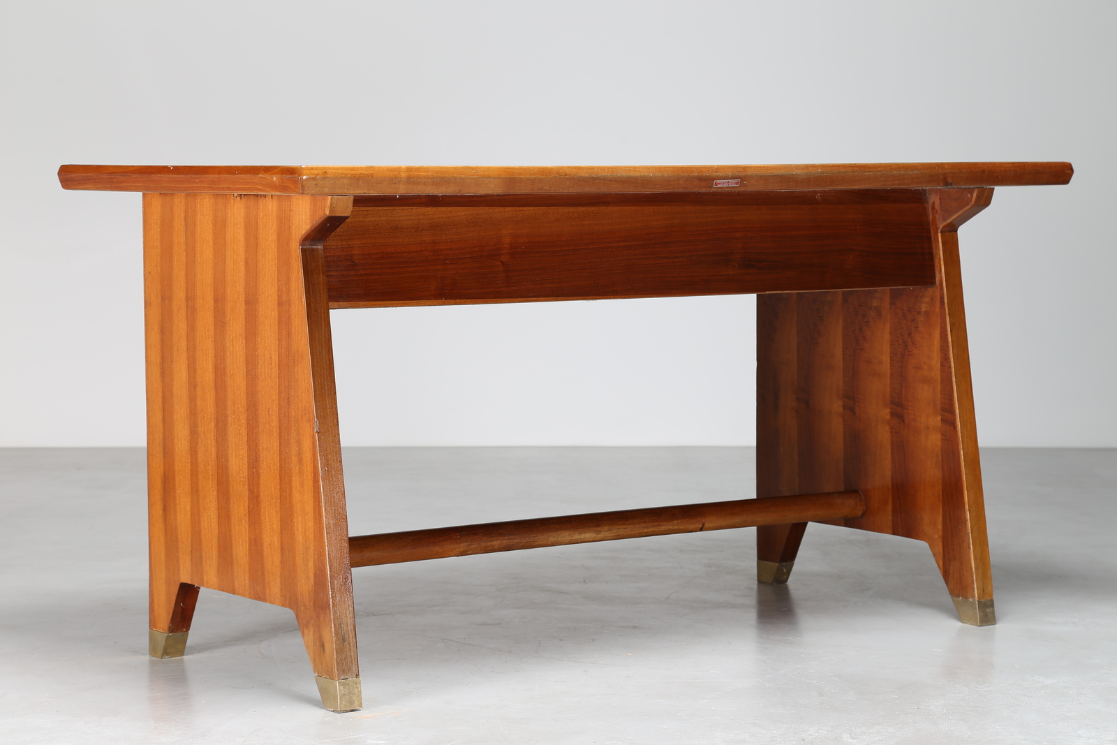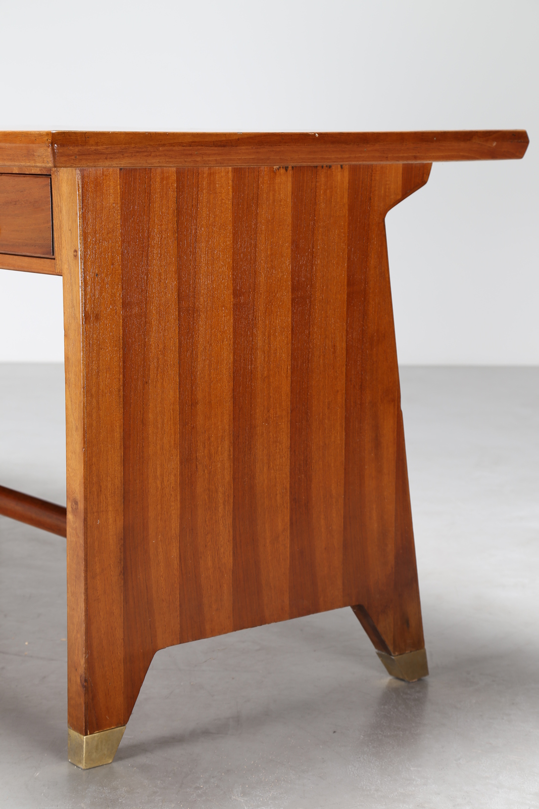 PONTI GIO' (1891 - 1979) Scrivania in noce con piano in formica, piedini e dettagli in ottone, progettata per gli uffici del comune di Forlì, esecuzione Cooperativa falegnami Reggio Emilia, anni 50. Expertice a cura di Salvatore Licitra Archives Gio Ponti Milano. . -. Cm 150,00 x 78,00 x 75,00.