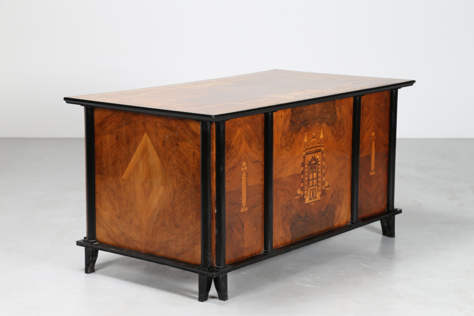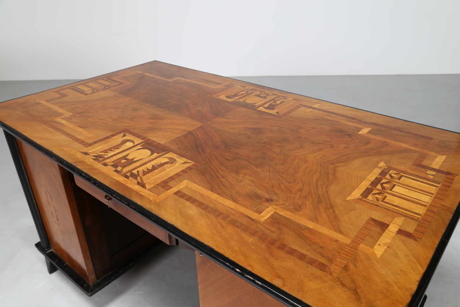 Lot 454 | BONFANTI FRANCESCO Attrib. Scrivania in legno laccato radica ed intarsi in...