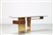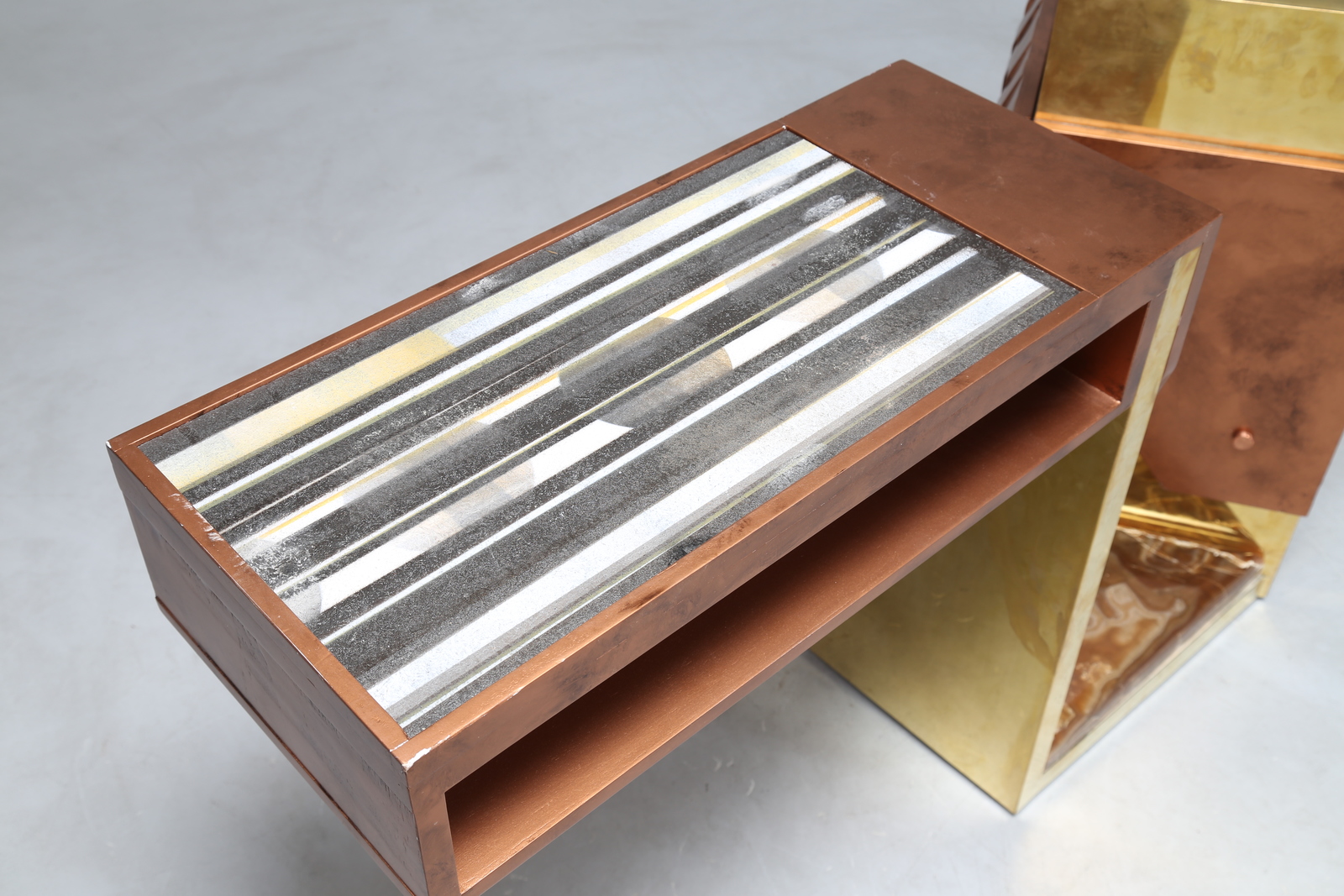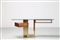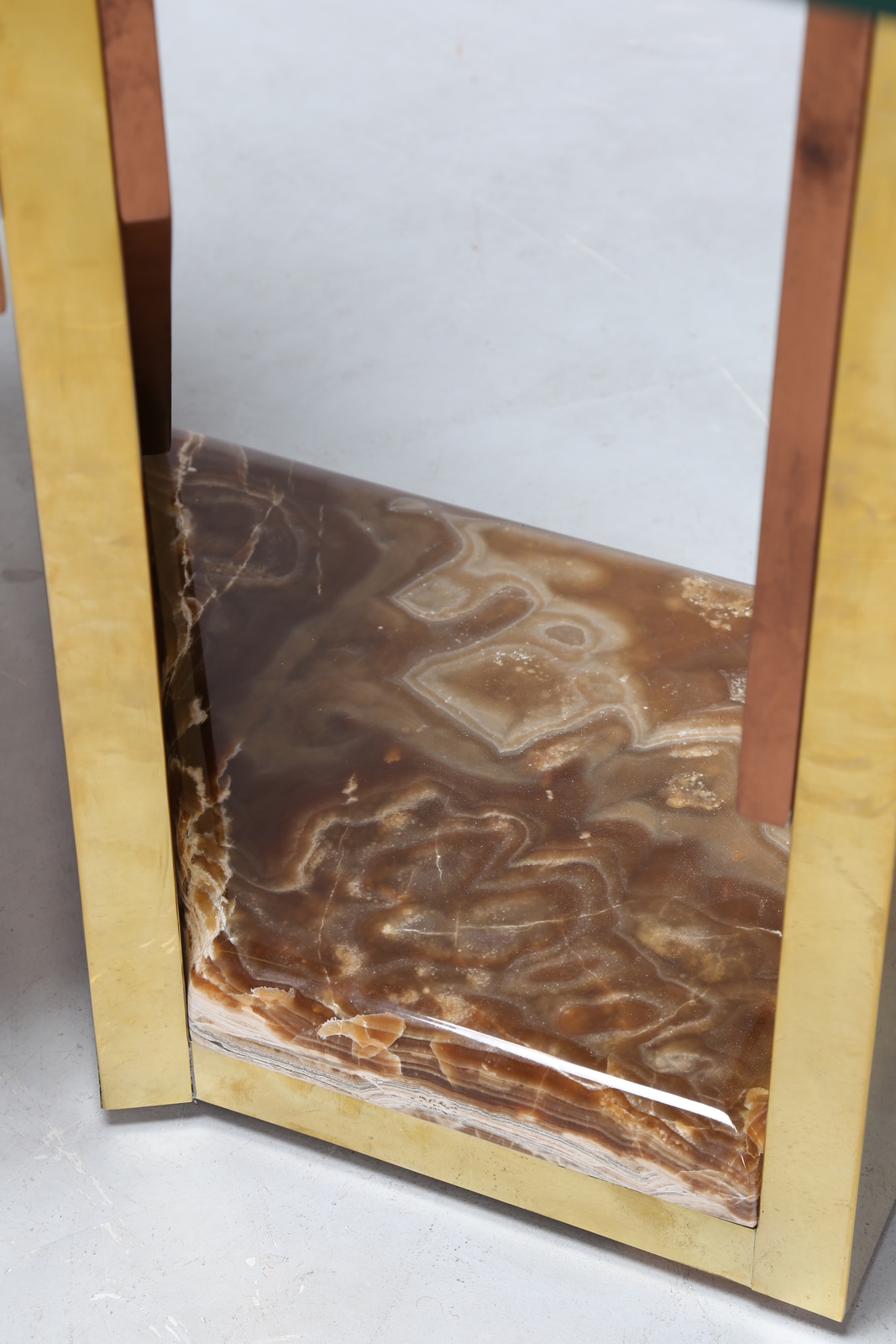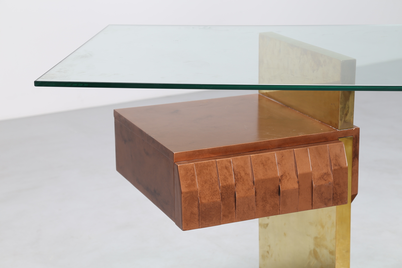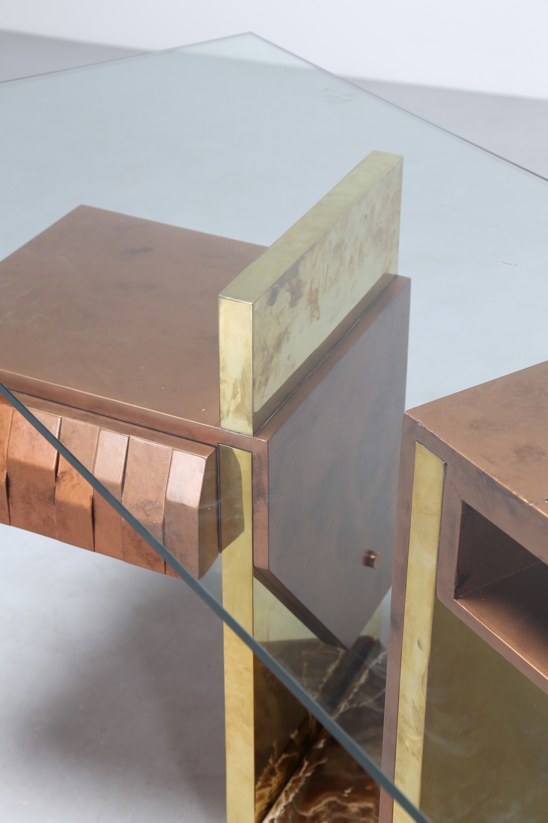 PILLANT MORDECAI Scrivania in legno ramato ottone piano in cristallo e base in onice, mod. Predicat uno di due. -. Cm 170,00 x 78,00 x 68,00.