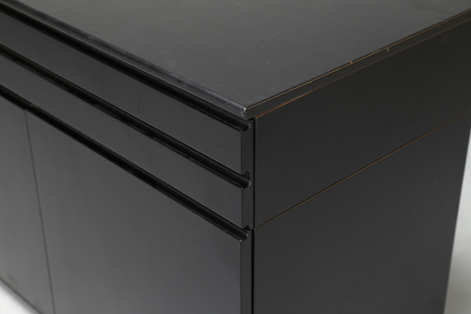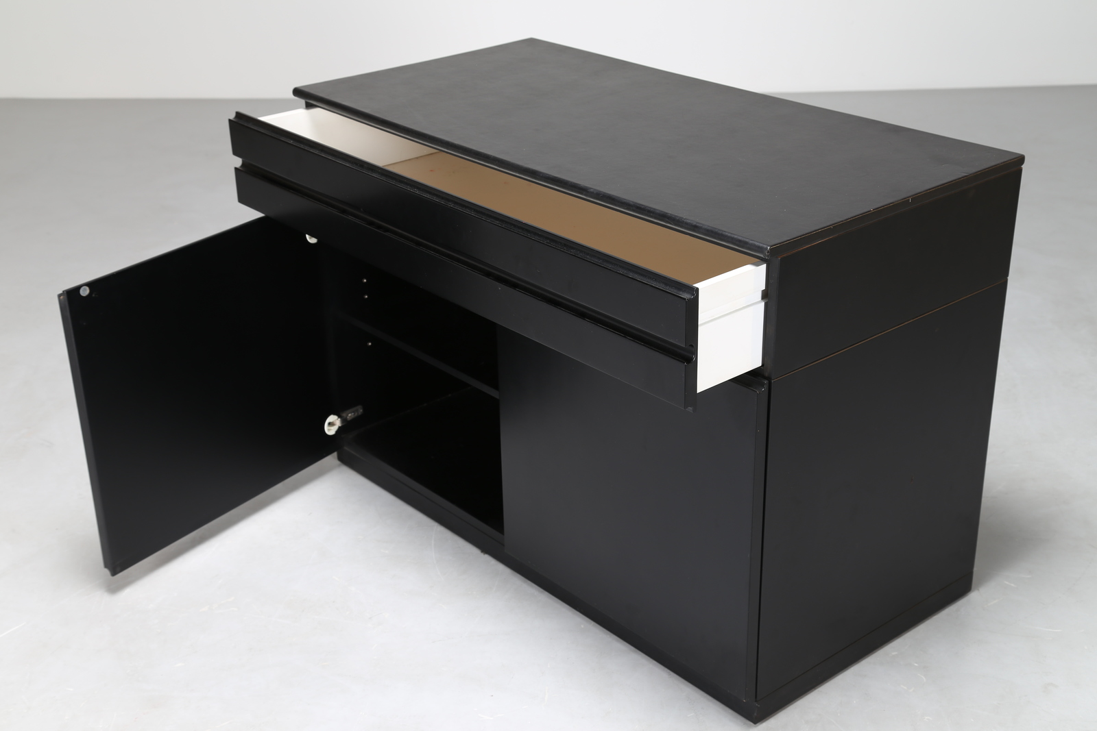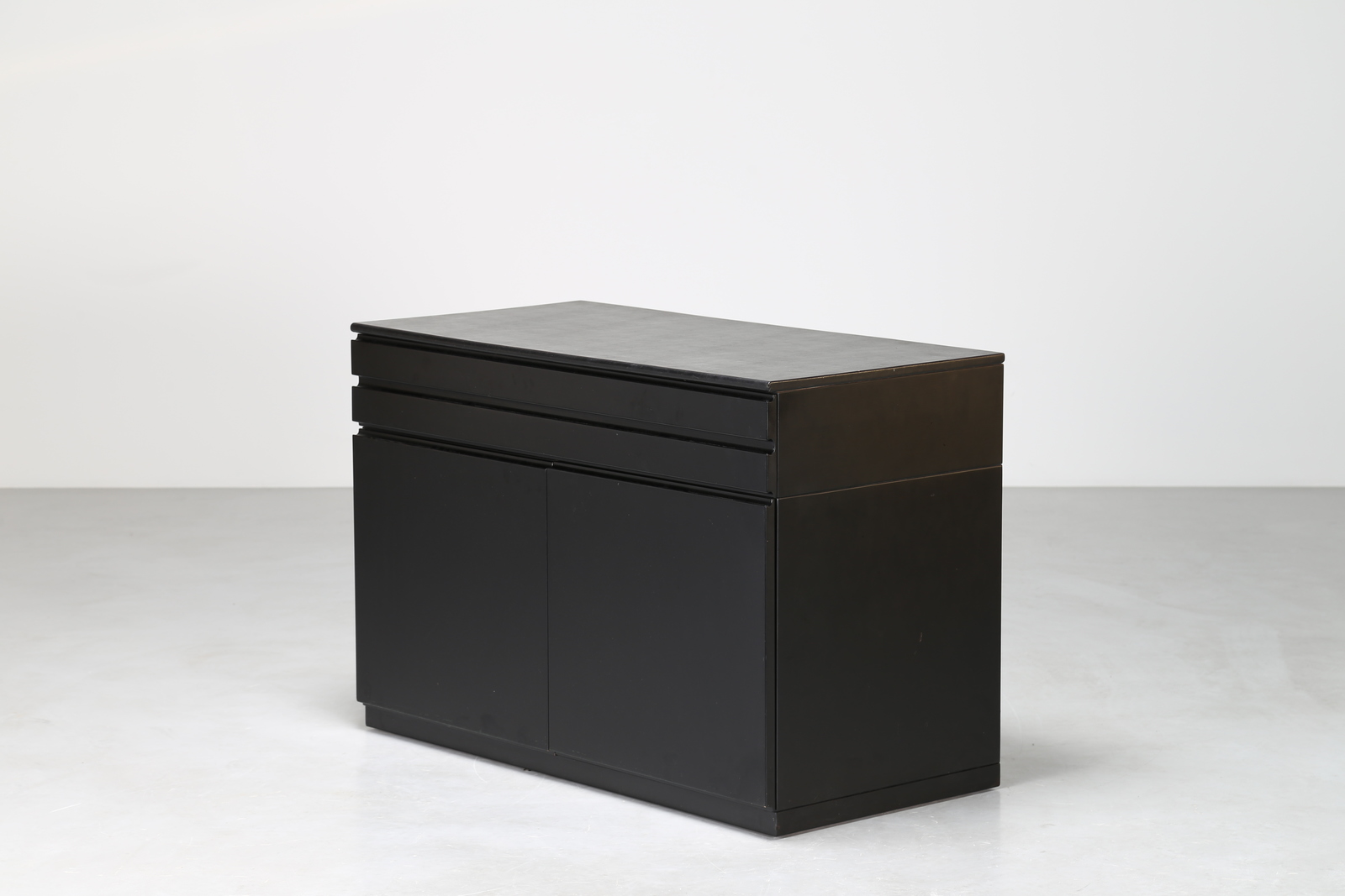 MAGISTRETTI VICO (1920 - 2006) Mobile da soggiorno in legno laccato piano rivestito in pelle mod. CS 49. -. Cm 107,00 x 73,00 x 55,00.
