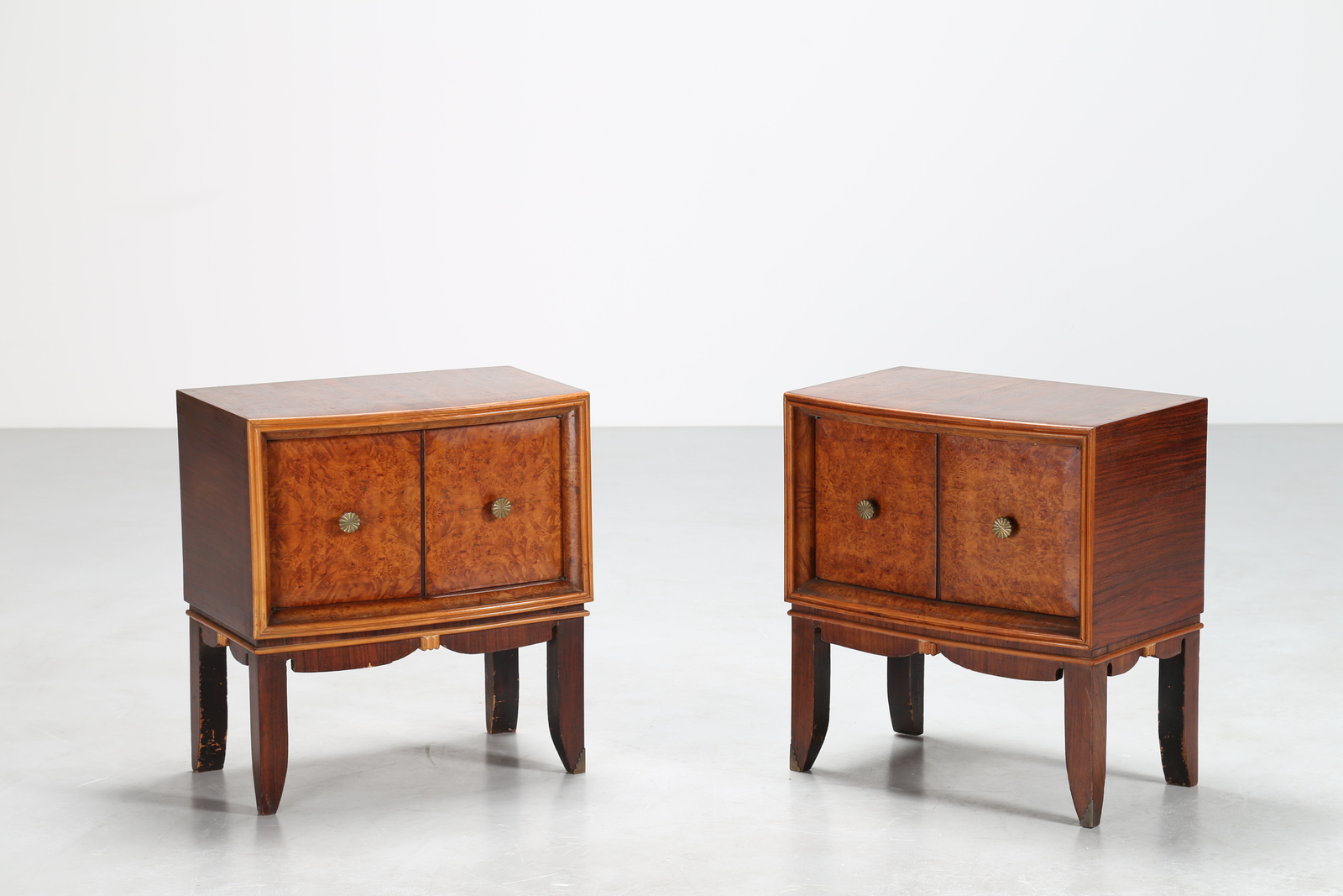 Lot 467 | MARELLI MICHELE Coppia di comodini in palissandro, radica e dettagli in...