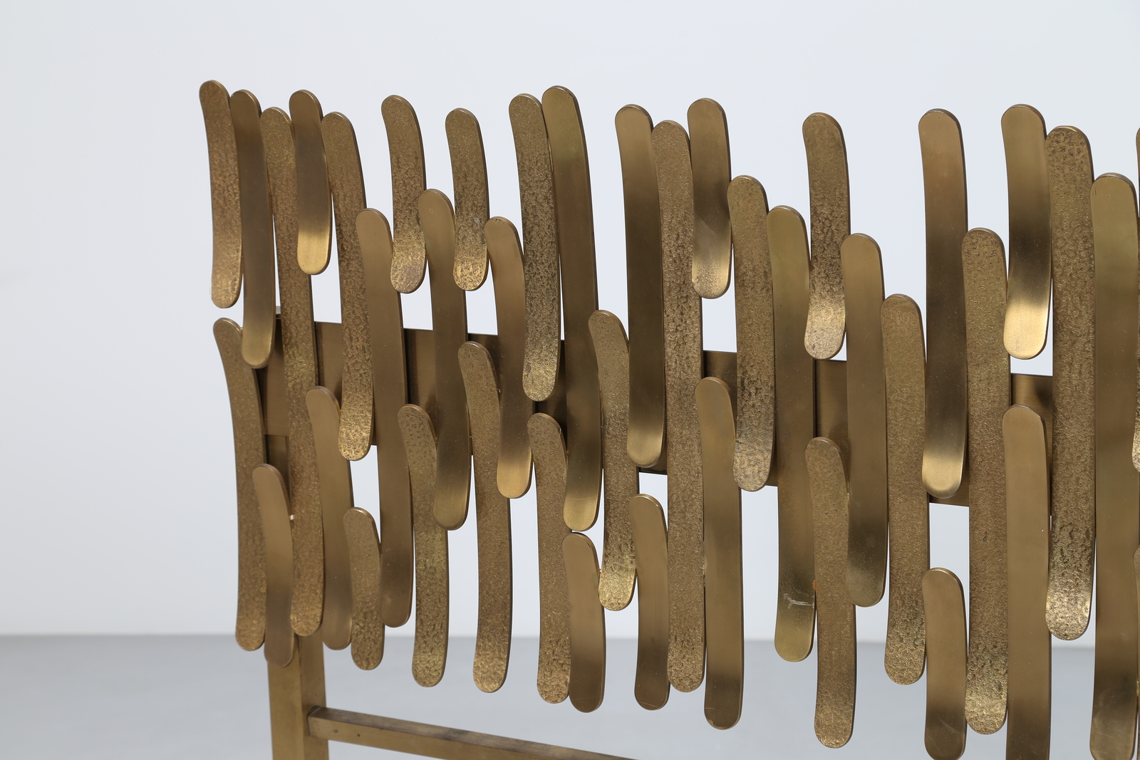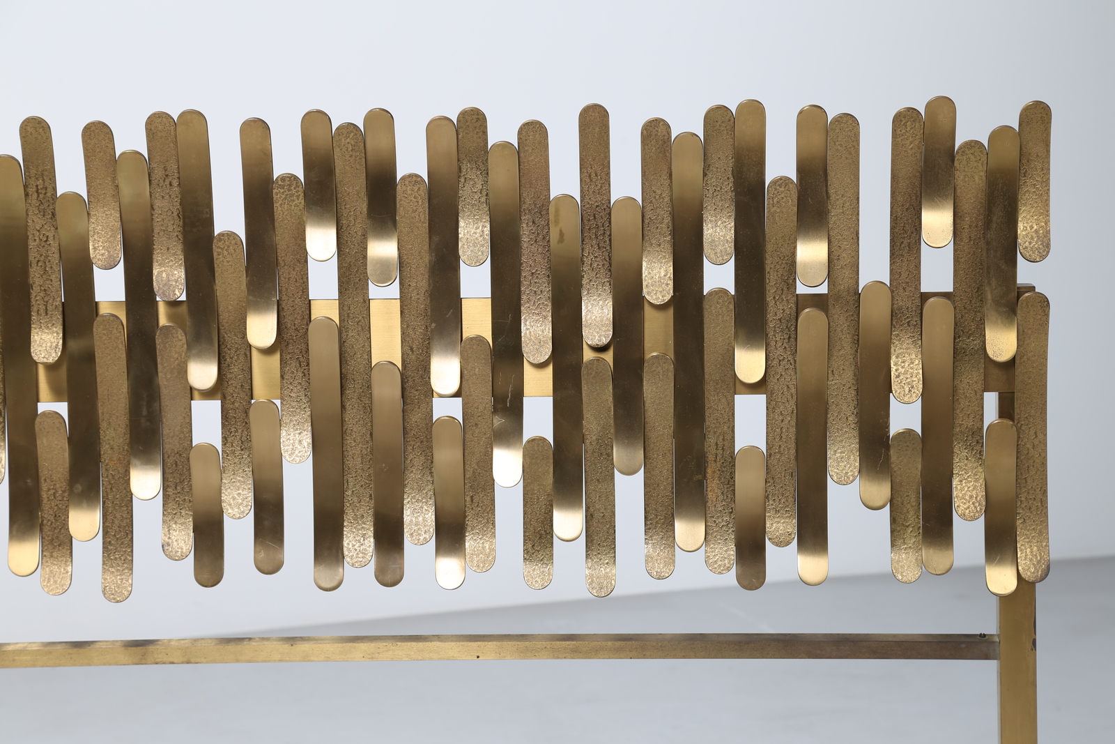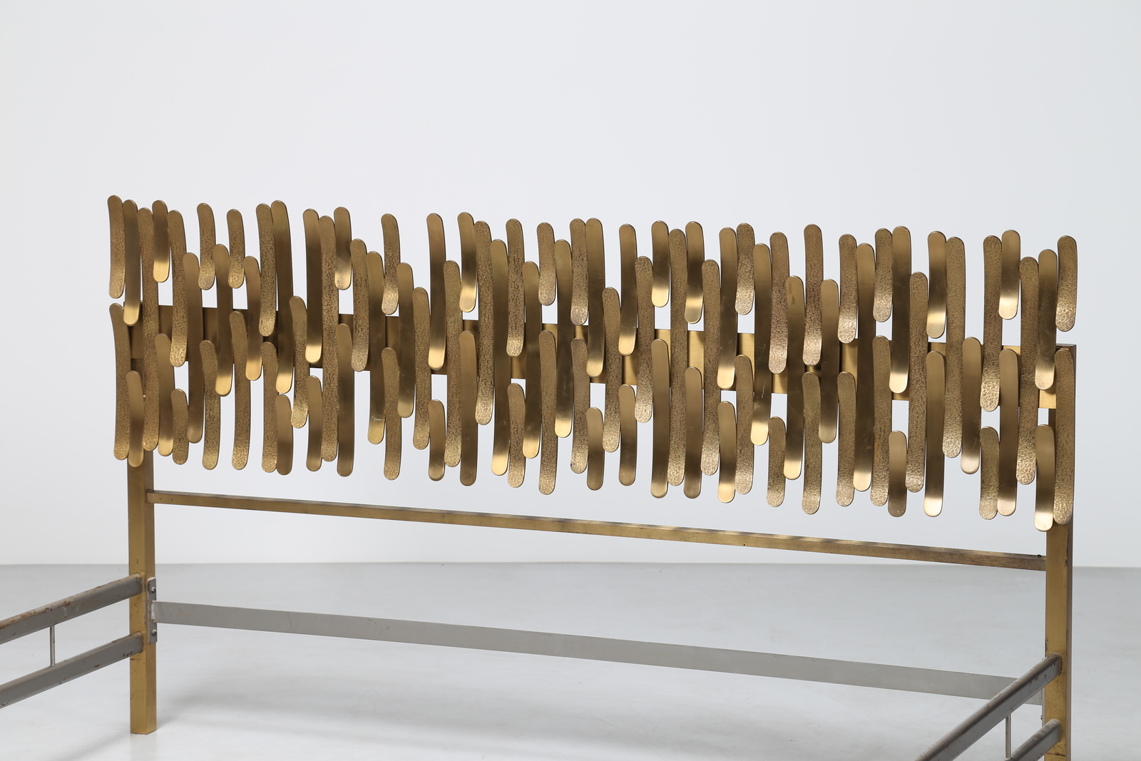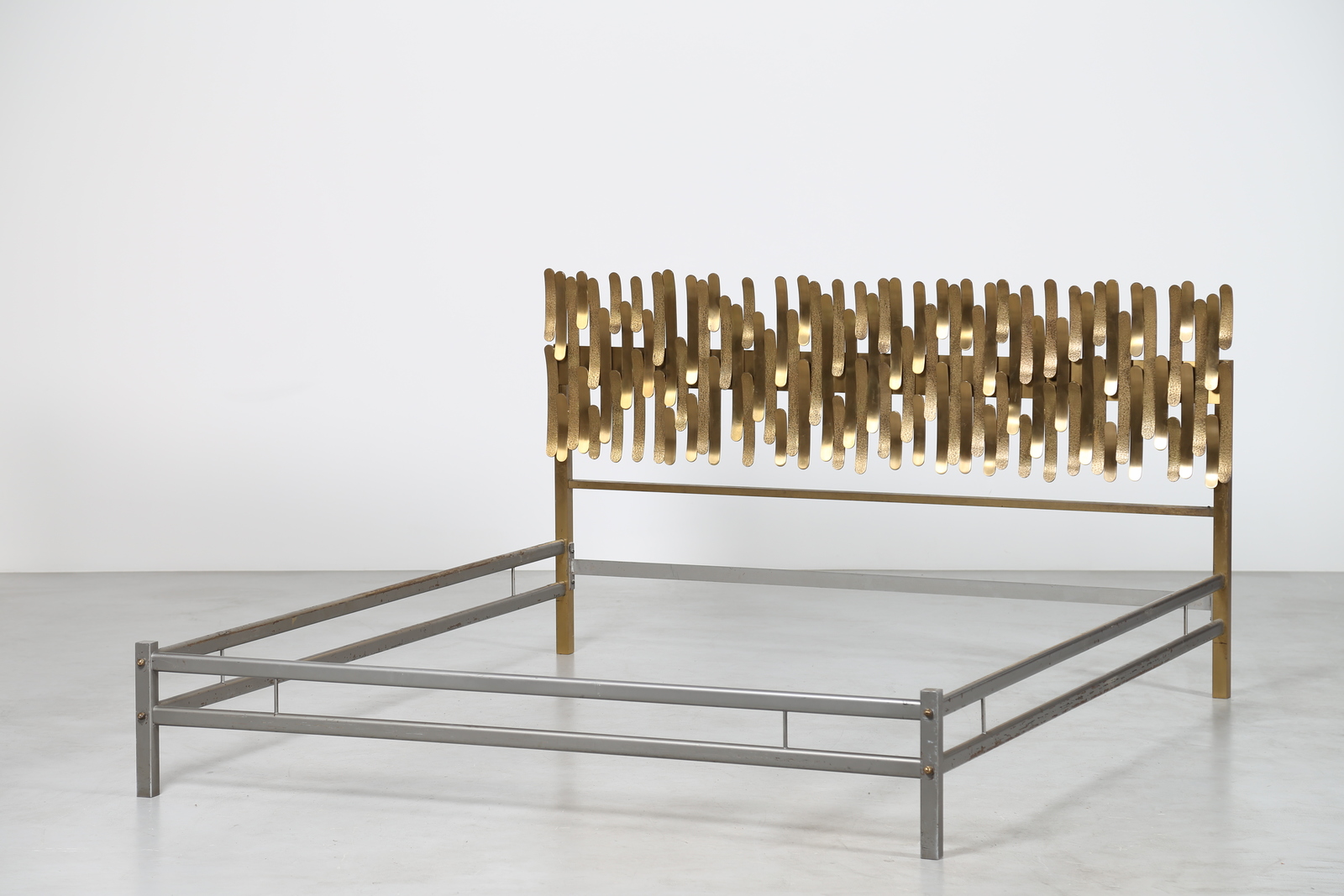 FRIGERIO DI DESIO Letto matrimoniale in ottone con testiera a piastre in fusione di bronzo, per Frigerio di Desio, anni 70 . -. Cm 177,00 x 99,50 x 202,00.