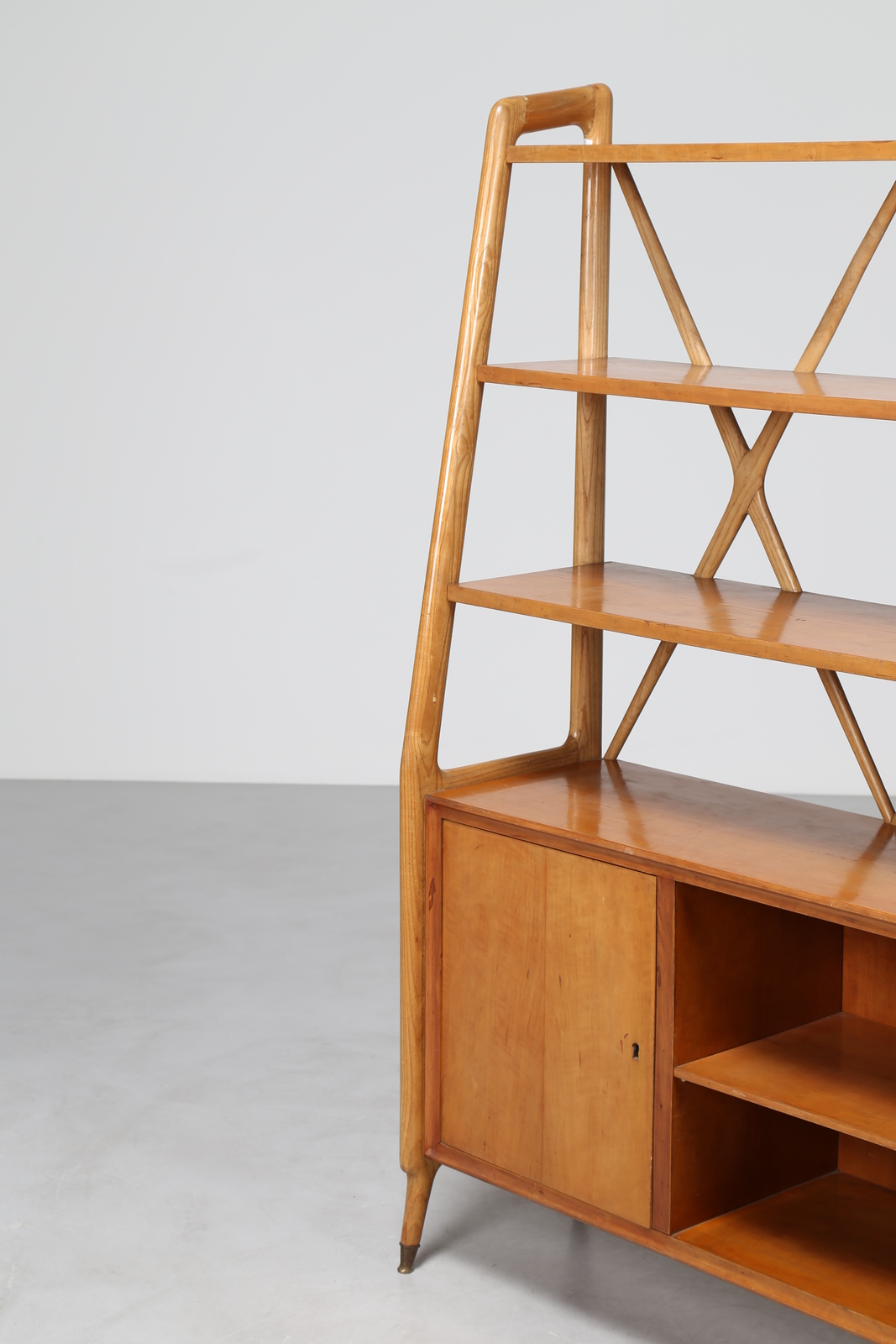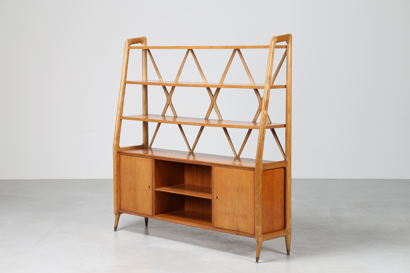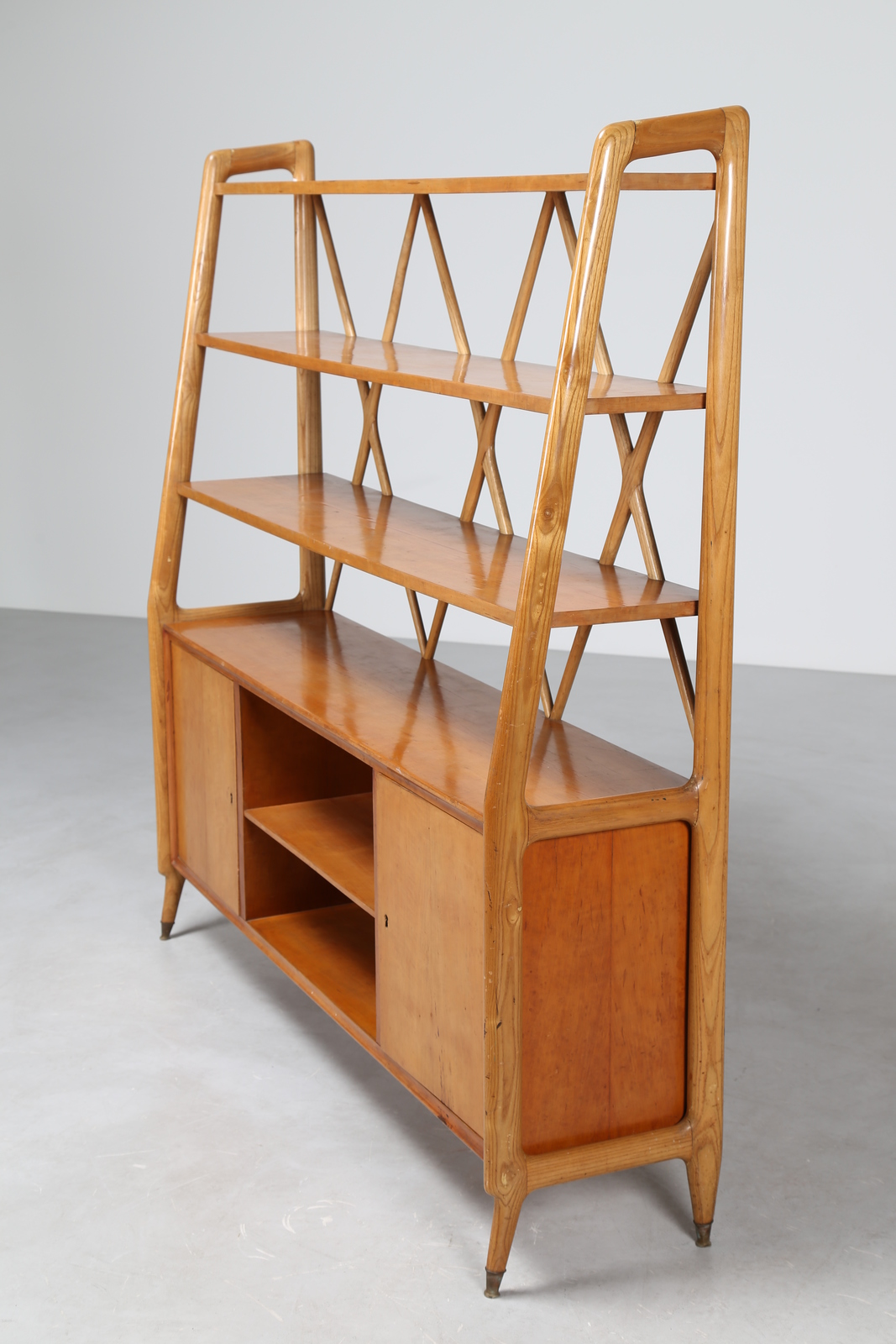 MANIFATTURA ITALIANA Attrib. Mobile da soggiorno in frassino e pero, anni 50. -. Cm 156,00 x 158,00 x 38,00.