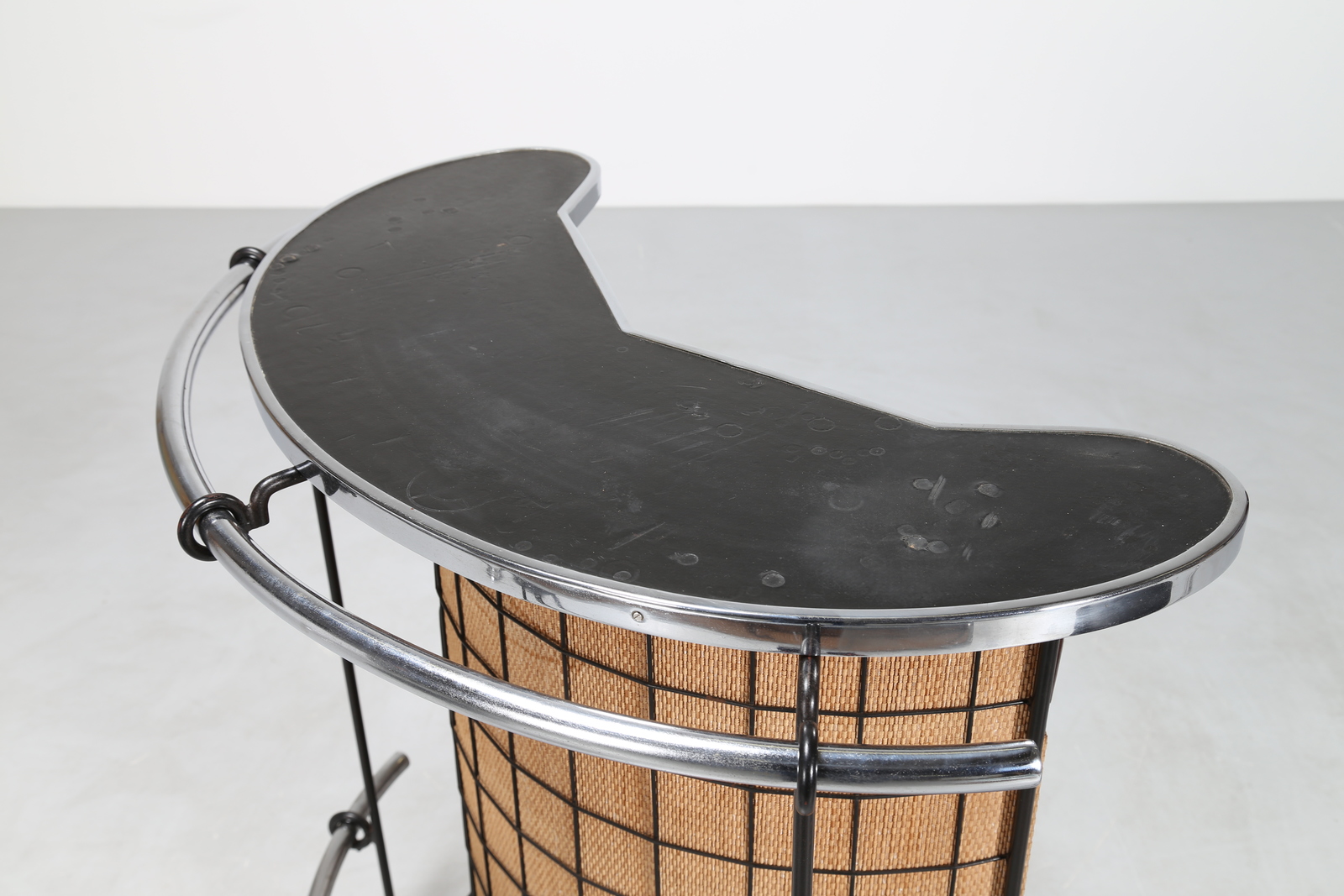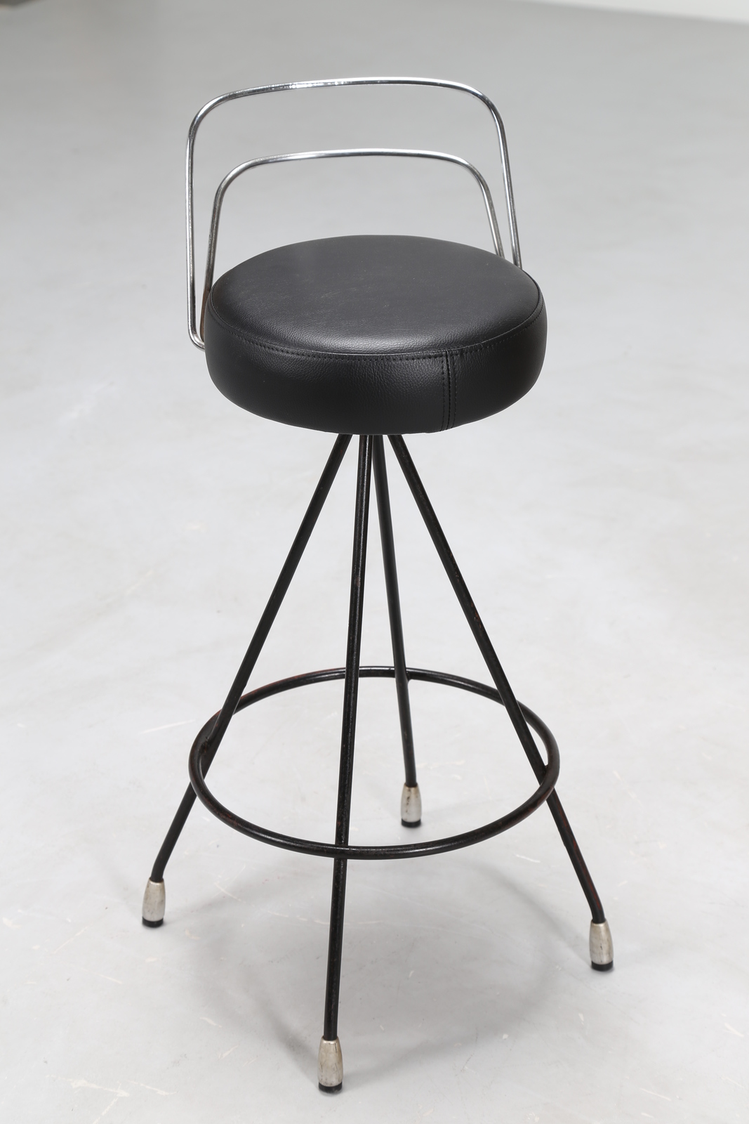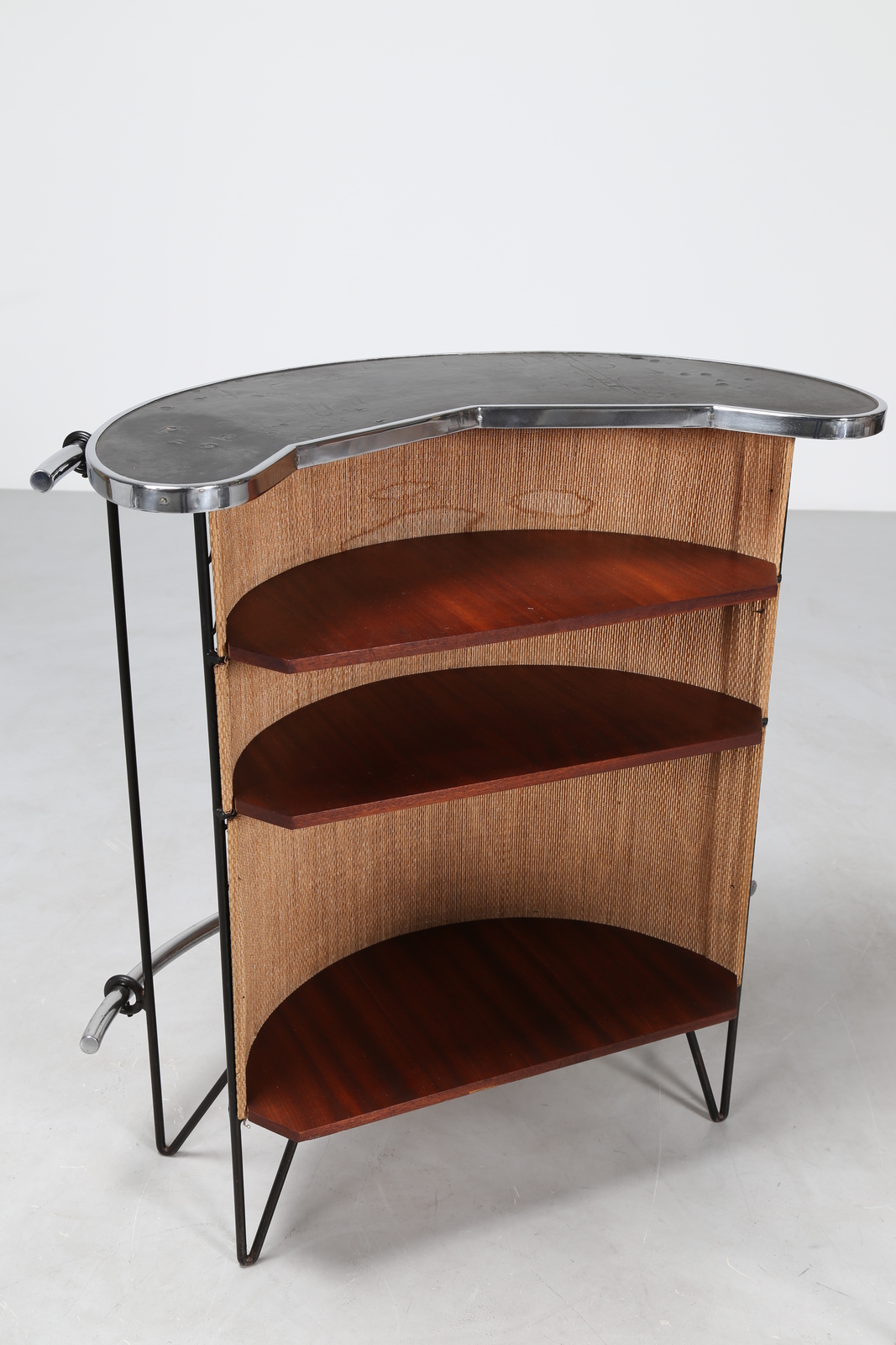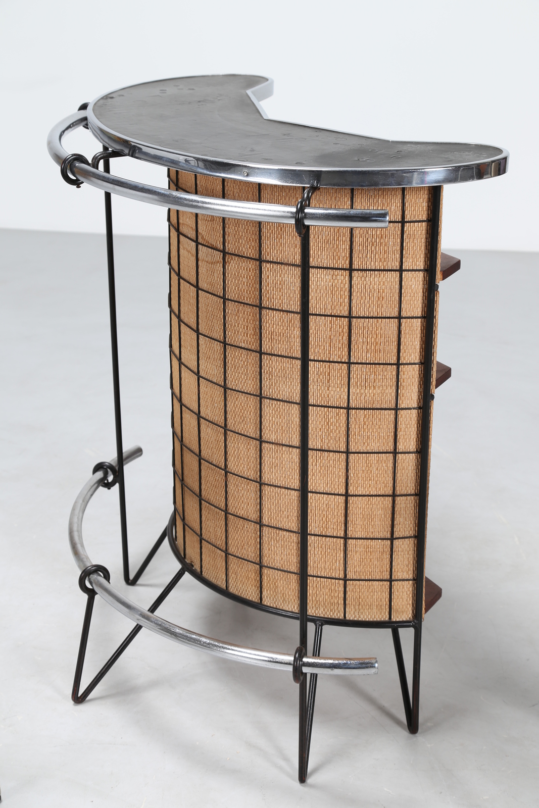 WEINBERG FREDERICK Attrib. Mobile bar e due sgabelli in tondino di ferro...