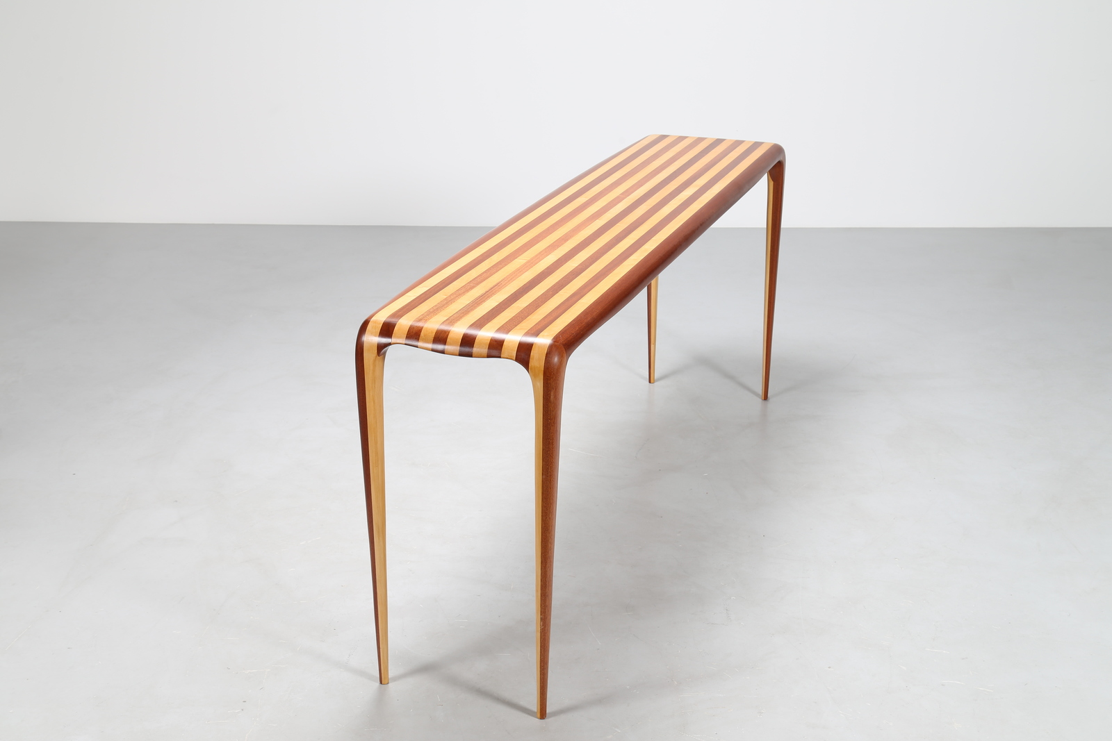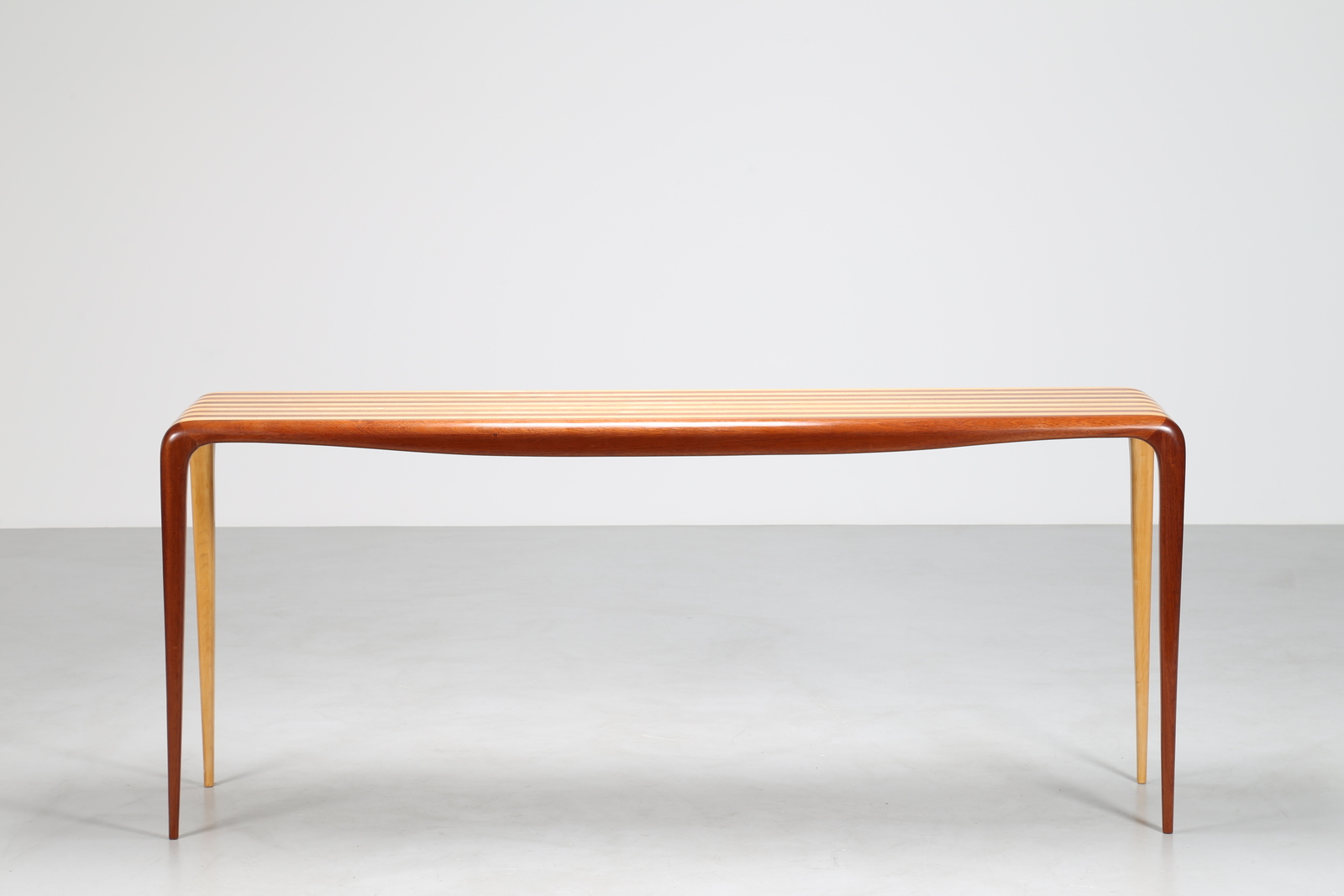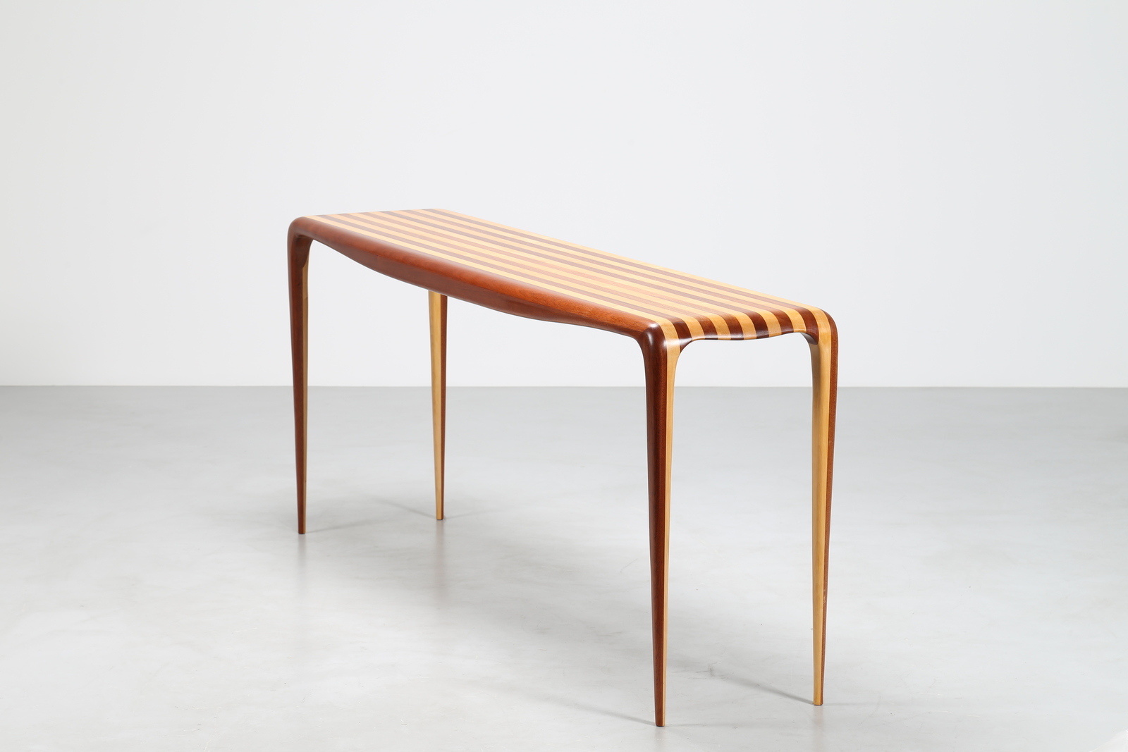 MANIFATTURA ITALIANA Consolle bicolore in mogano e acero, anni 80. -. Cm 201,00 x 86,00 x 50,00.