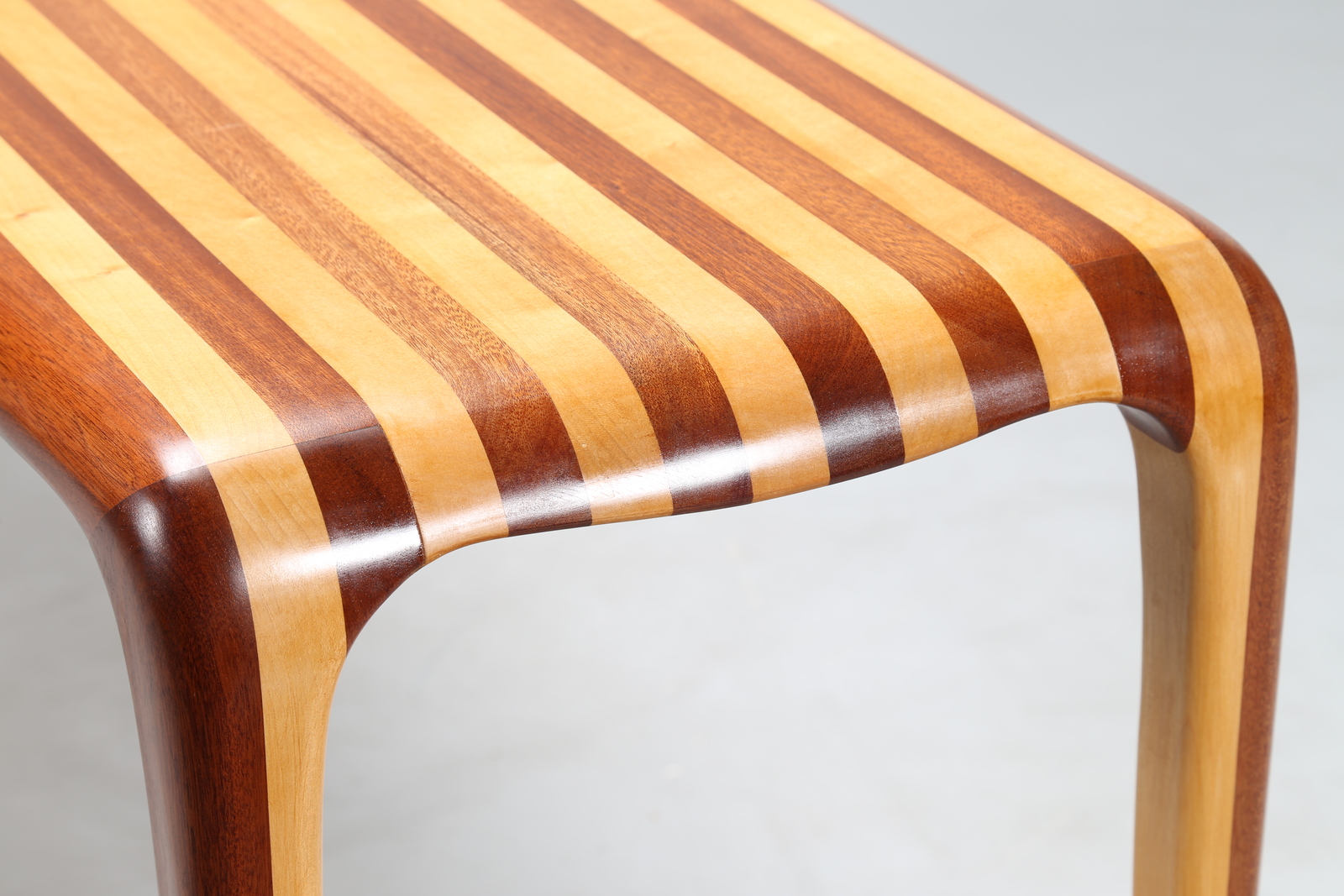 MANIFATTURA ITALIANA Consolle bicolore in mogano e acero, anni 80. -. Cm...
