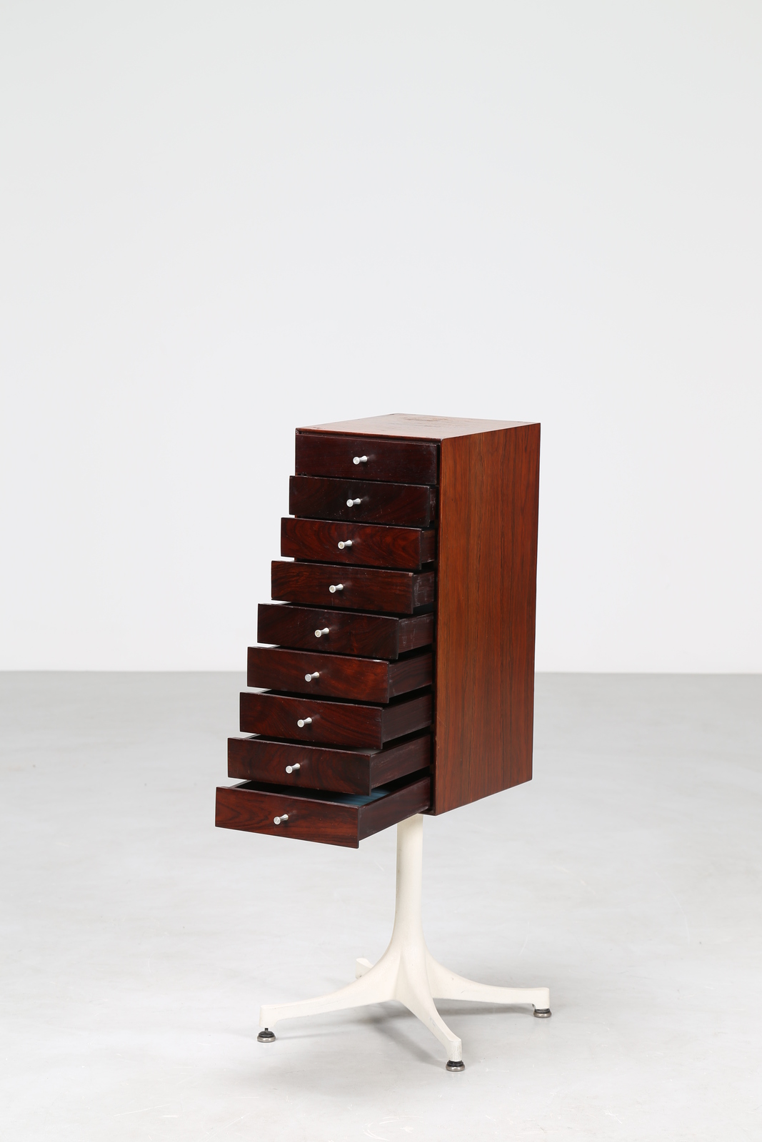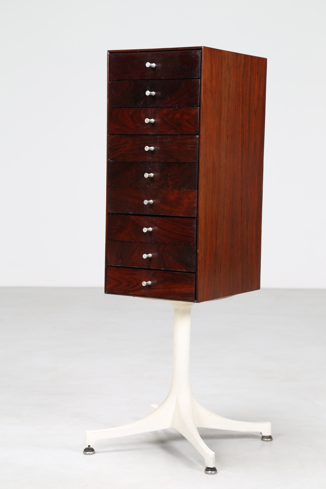 NELSON GEORGE (1908 - 1986) Cassettiera in palissandro e alluminio smaltato,...