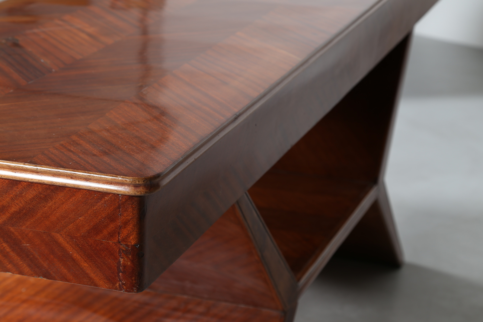MANIFATTURA ITALIANA Coppia di consolle da centro in mogano e dettagli in...