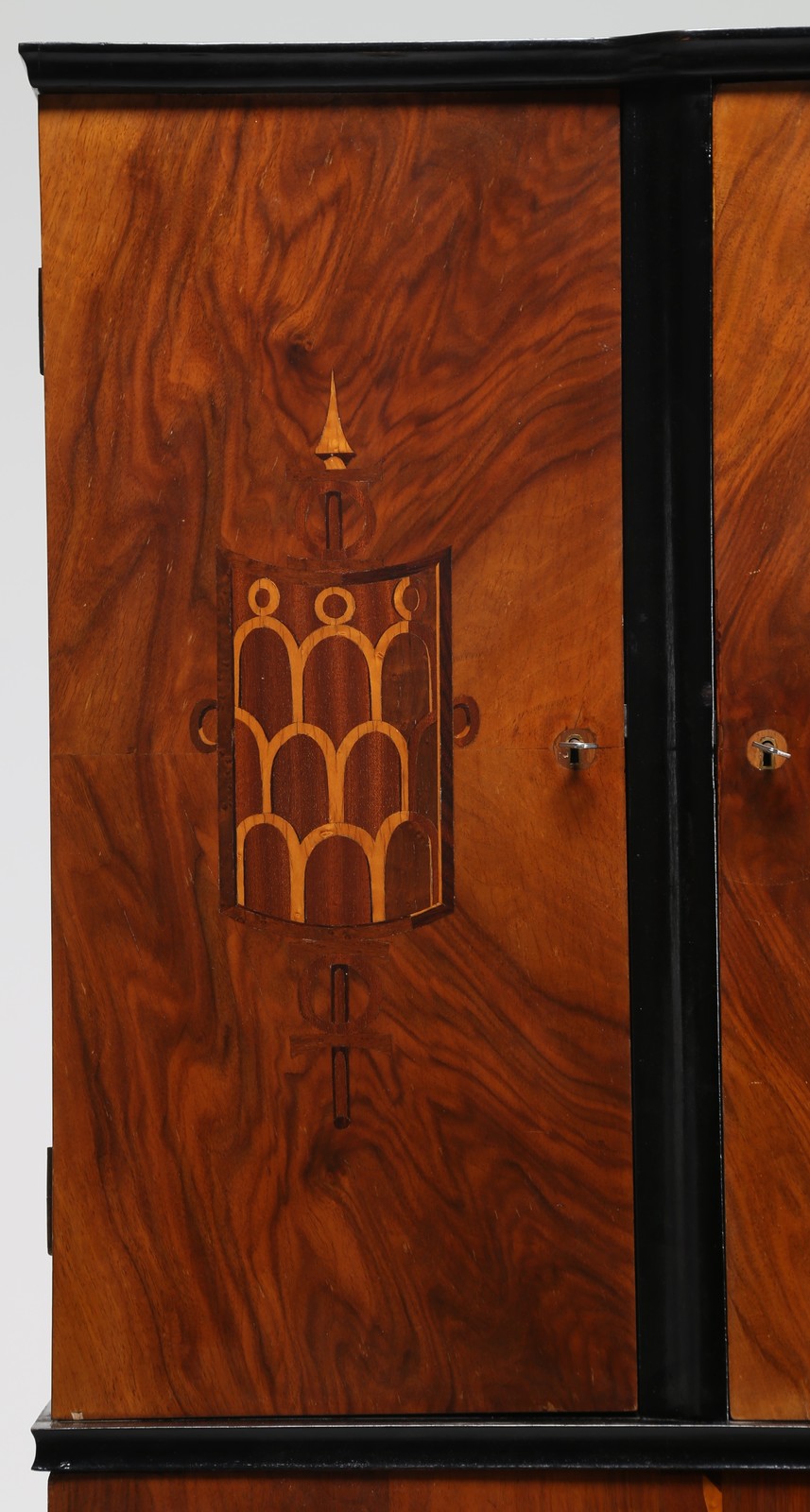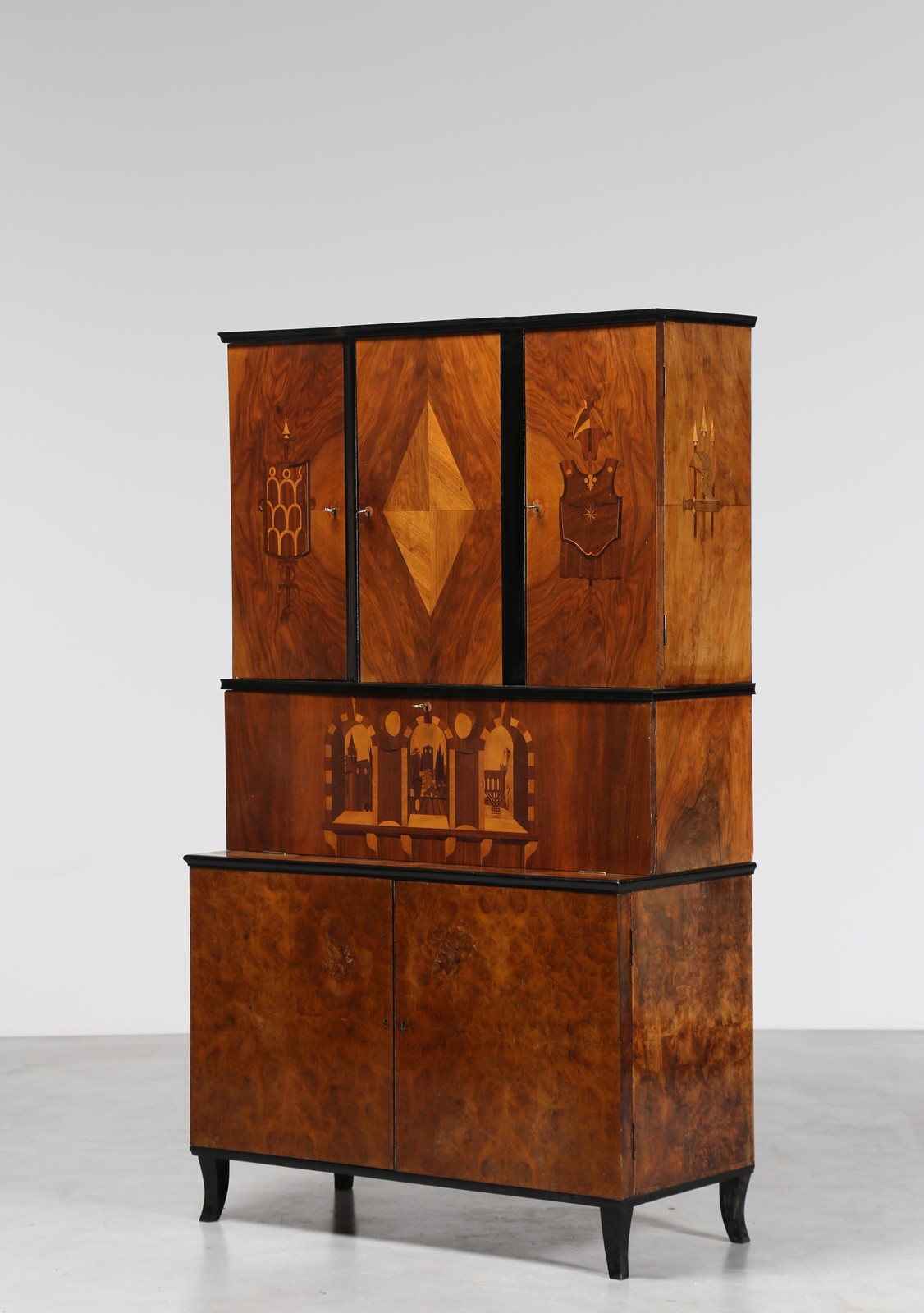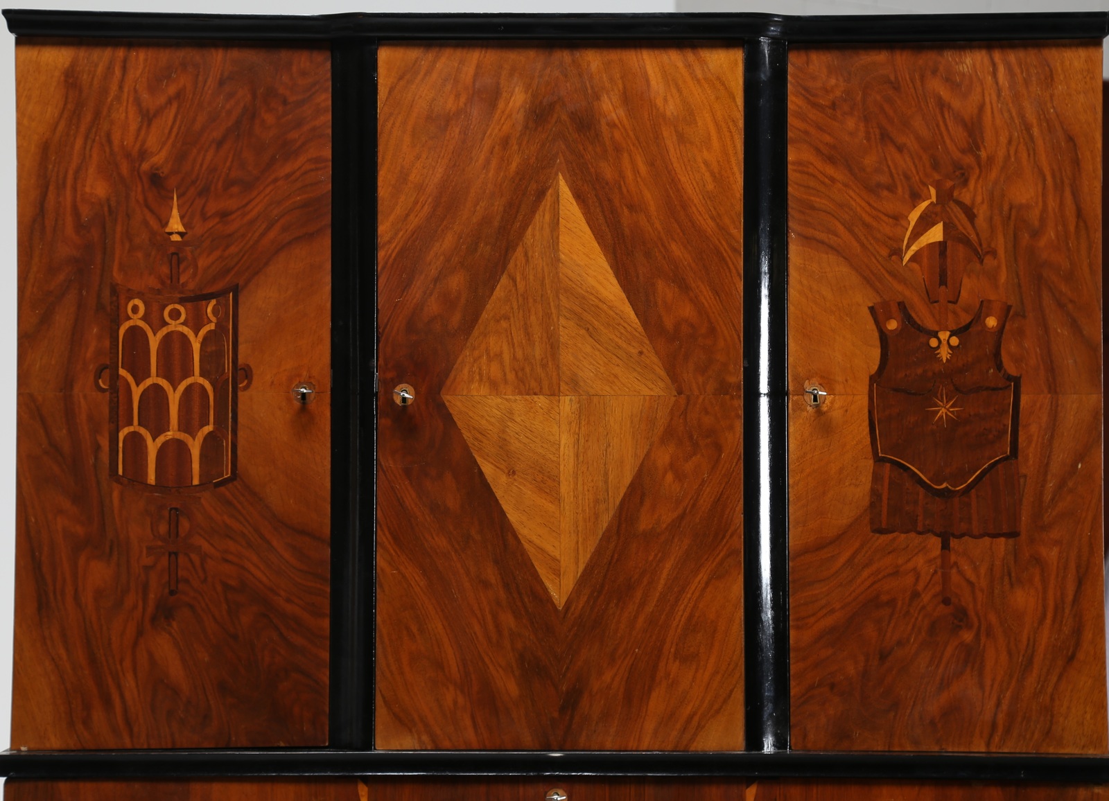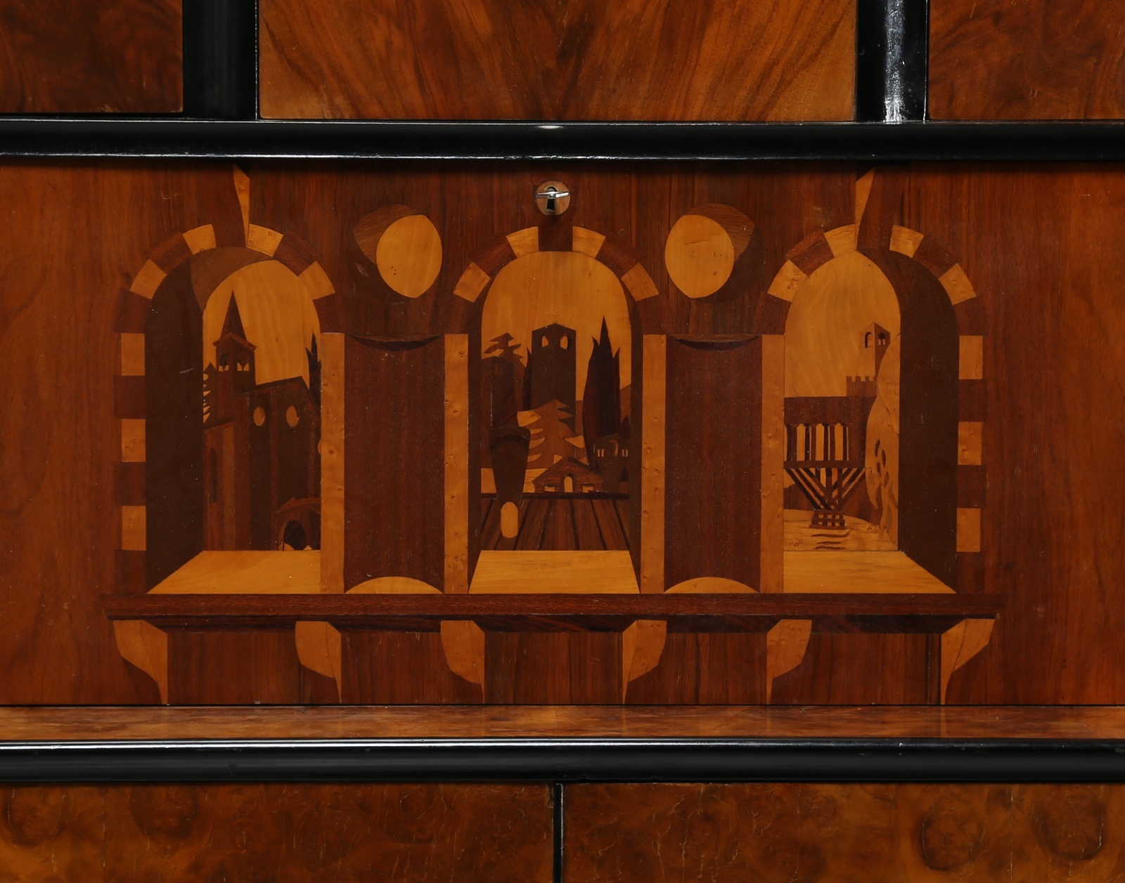 BONFANTI FRANCESCO Attrib. Bureau in legno laccato radica ed intarsi in varie...