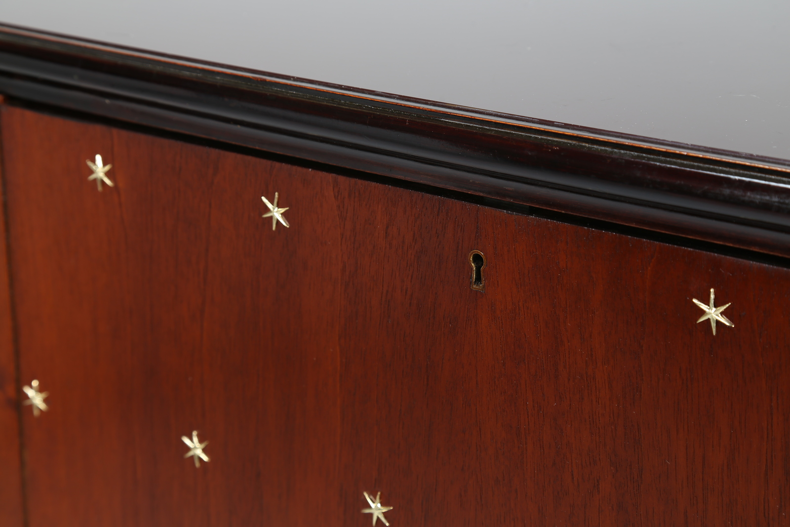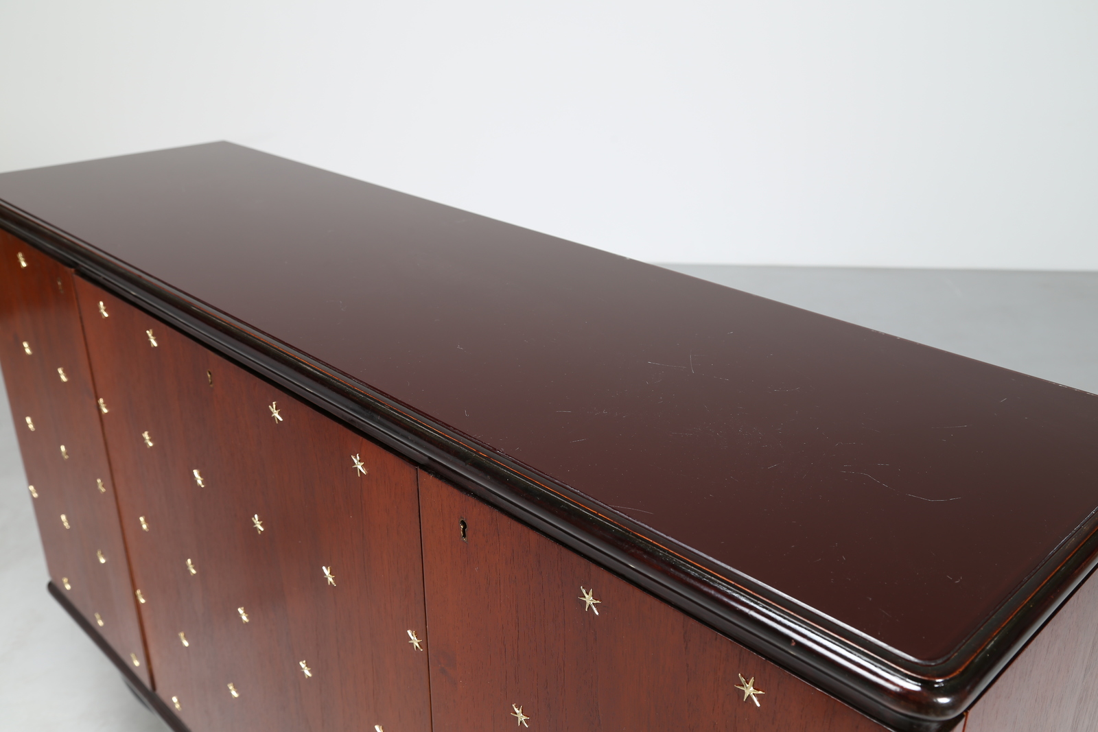 BUFFA PAOLO (1903 - 1970) Mobile bar il mogano e legno laccato con piano in vetro e dettagli in ottone, collezione privata. Pubblicazioni; Il mobile Italiano Degli Anni '40 e '50 , de Guttry e Maino, pag. 117 . -. Cm 141,50 x 109,00 x 40,00.