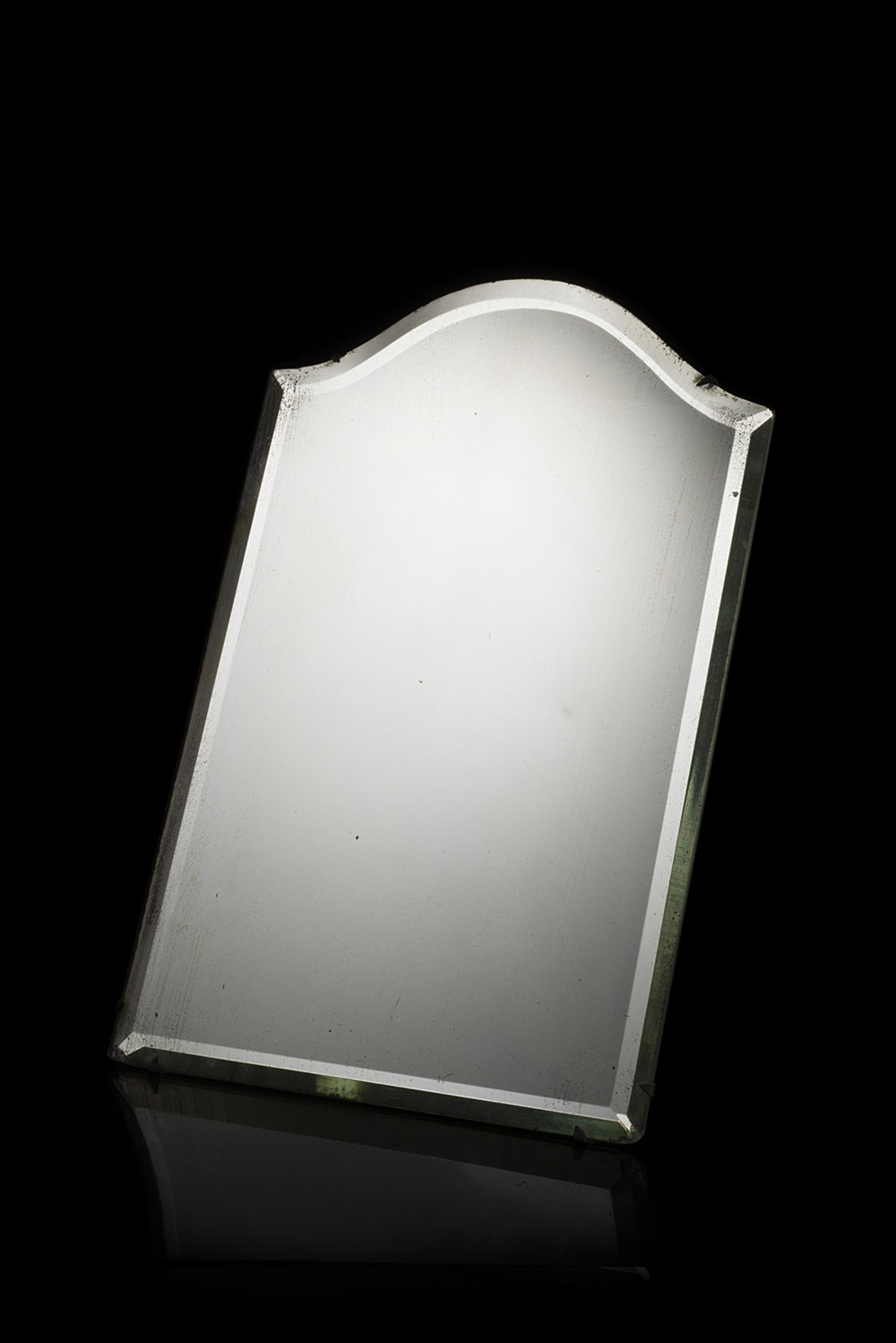 Luigi Fontana & C Specchio da tavolo di forma sagomata. Milano, anni 20. Reca marchio della manifattura incusso al verso (cm 27x18) (lievi difetti) Table mirror. Milan, 1920. Marked (cm 27x18) (minor defects)