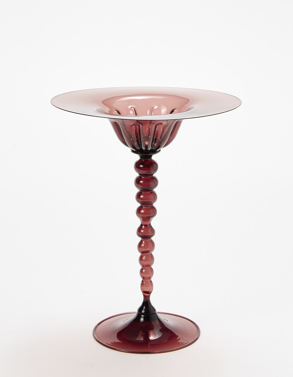 Manifattura di Murano Alzatina in vetro ametista scuro con coppa baccellata. Prima met‡ sec XX (h cm 20) Murano Manufacture A glass centerpiece. Early XX century (h cm 20)