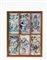 Emanuele Luzzati (Genova 1921 - 2007) "I tarocchi", sei formelle in ceramica policroma sotto vetrina. Albisola, anni 60/70. In cornice (misure formelle singole cm 19x9, misure con cornice cm 43,5x34) "I tarocchi", six ceramic tiles. Albisola, 1960s/1970s. Framed (single tile cm 19x9, with frame total cm 43,5x34)