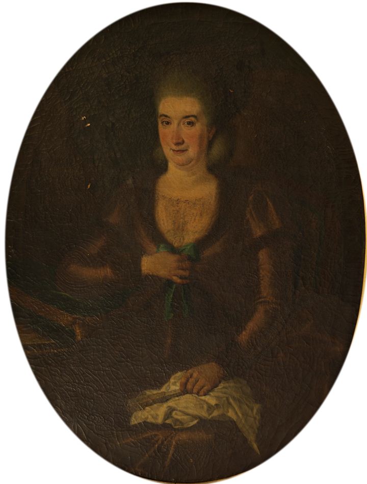 PITTORE DEL '700 "Ritratto femminile con ventaglio" 125x96 (ovale) olio su...