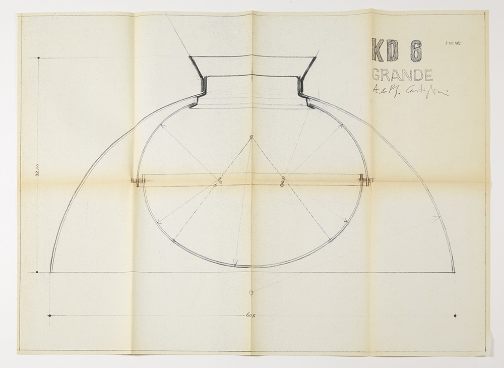 Achille Castiglioni (Milano 1918 - 2002) e Pier Giacomo Castiglioni (Milano 1913 - 1968) ( ) "KD 6 GRANDE". Riproduzione eliografica del disegno esecutivo in scala 1:1 per la lampada KD 6. Timbro a inchiostro con data 2 maggio 1962 (cm 51x70) "KD 6 GRANDE". Sketch for "KD6" lamp. With stamp "2 May 1962" (cm 51x70)