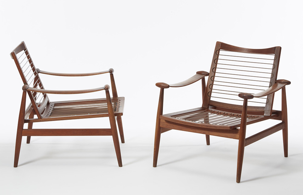 Finn Juhl ( 1912 - 1989) Coppia di poltroncine modello "133". Produzione...