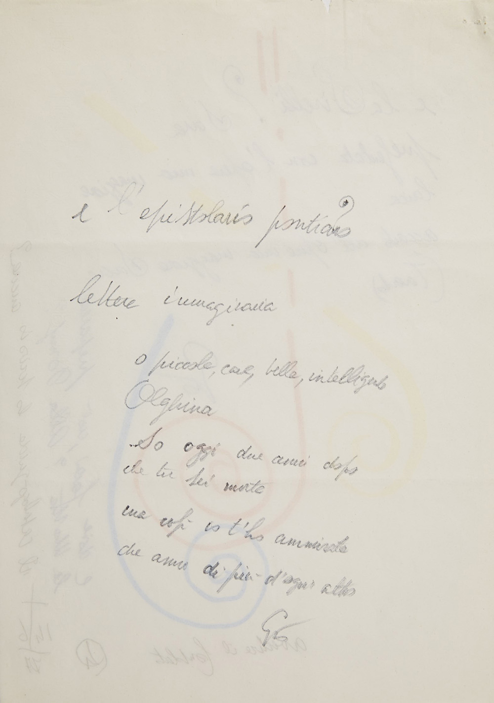 Gio Ponti (Milano 1891 - 1979) Lettera autografa con disegni policromi,...