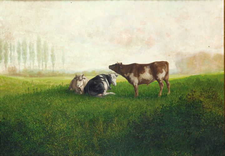PITTORE ANONIMO DELL'800 "Al pascolo" 50x70 olio su tela