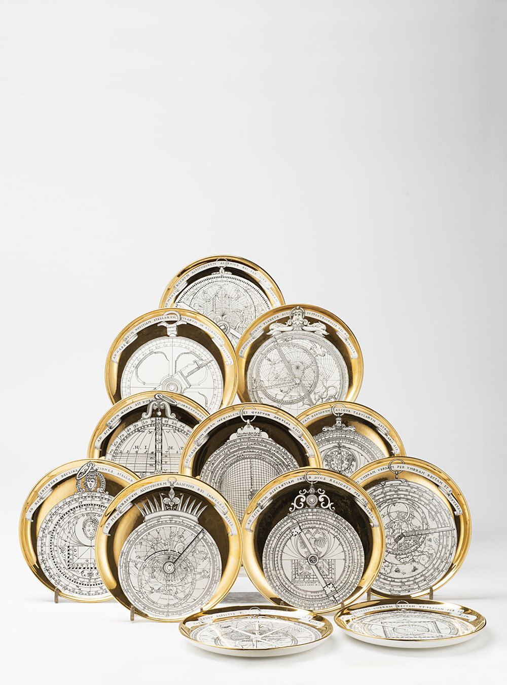 Piero Fornasetti (Milano 1913 - 1988) Dodici piatti della serie "Astrolabio"...