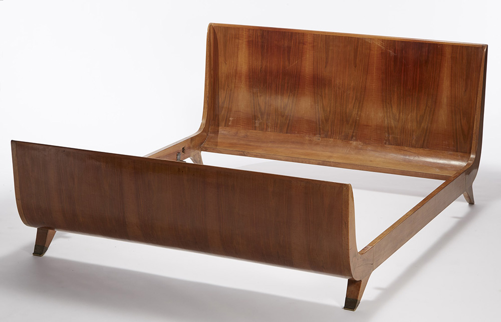 Paolo Buffa (Milano 1903 - 1970) Letto a due piazze impiallacciato e bordato...