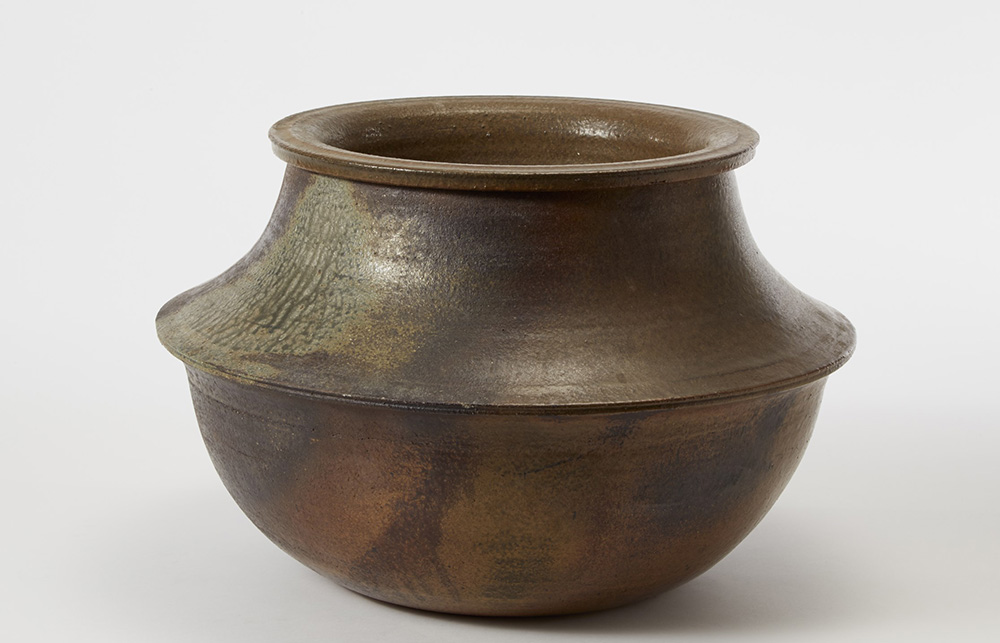 Nanni Valentini (Sant'Angelo In Vado 1932 - 1985) Grande vaso in grËs lavorato al tornio e smaltato con colature nei toni dellíocra e del verde. Manifattura Ceramica Arcore, anni 70. Marcato "CA" sotto la base (h cm 38) (lievi difetti) Provenienza: Collezione Lino Sabattini, Bregnano Big grËs vase. Manufactured by Ceramica Arcore, 1970s. Marked "CA" under the base (h cm 38) (minor defects) Provenance: Collezione Lino Sabattini, Bregnano