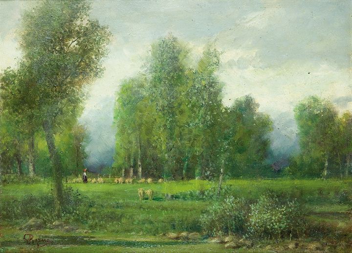 PISANO GIOVANNI Sevi (NU) 1875 - 1964 Torino "Pascolo nei boschi" 30x40 olio...