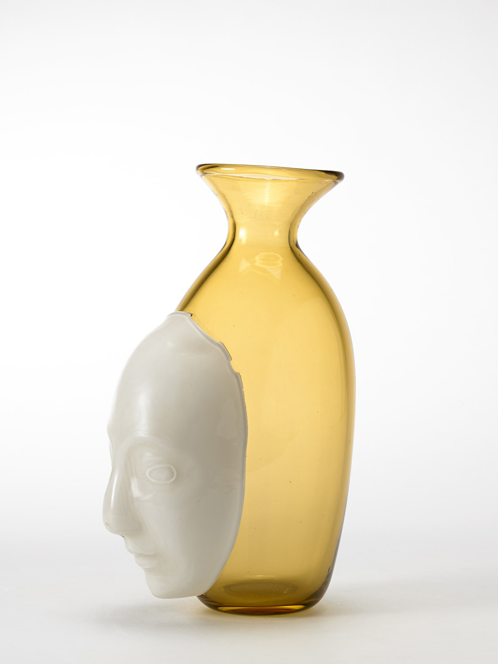 Fulvio Bianconi ( 1915 - 1996) Vaso in vetro trasparente pagliesco con maschera applicata in vetro lattimo. Venini, Murano anni 80 (h cm 37) Prova d'artista: esemplare unico Glass vase with mask. Venini, Murano, 1980s (h cm 37) Artist's proof, one of a kind