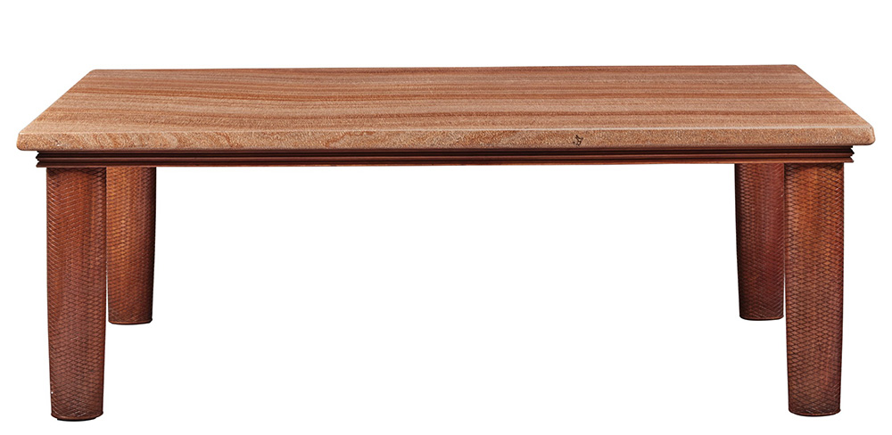 Osvaldo Borsani ( 1911 - 1985) Grande tavolo in legno di mogano con piano in marmo beige venato di forte spessore. Gambe e struttura in legno massello intagliato a motivi romboidali. Arredamenti Borsani Varedo, 1941 (cm 221x105x77) (lievi difetti) Provenienza: collezione privata, Milano Accompagnato da certificazione scritta n. 5697/2 dell'Archivio Osvaldo Borsani Il lotto Ë visibile su appuntamento presso la nostra sede di via Pitteri, 8 Big mahogany table with marble top. Legs and structure in solid wood with rhomboidal decorations . Arredamenti Borsani, Varedo, 1941 (cm 221x105x77) (minor defects) Provenance: private collection, Milan. Comes with the expertise n. 5697/2 issued by Archivio Osvaldo Borsani The lot can be seen in our offices in via Pitteri 8