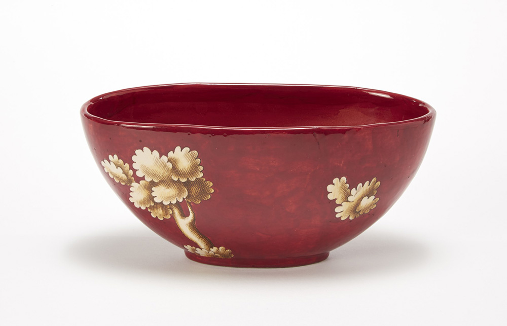 Gio Ponti (Milano 1891 - 1979) Vaso ovoidale in maiolica formata a stampo, dipinta a mano sotto vetrina, fondo vinaccia con figurazione vegetale in giallo bruno chiaroscurato. Forma del vaso n. 1106. Manifattura Richard-Ginori, Doccia (Firenze), 1925 ca. Iscritta in bruno sotto la base con il monogramma della corona, la firma "GiÚponti" e il numerale 1106 (h cm 11,5x25) (lievi difetti) Ceramic vase. Manufactured by Richard Ginori, Doccia, 1925 circa. Signed "GiÚponti", numbered 1106 and marked under the base (h cm 11,5x25) (minor defects)