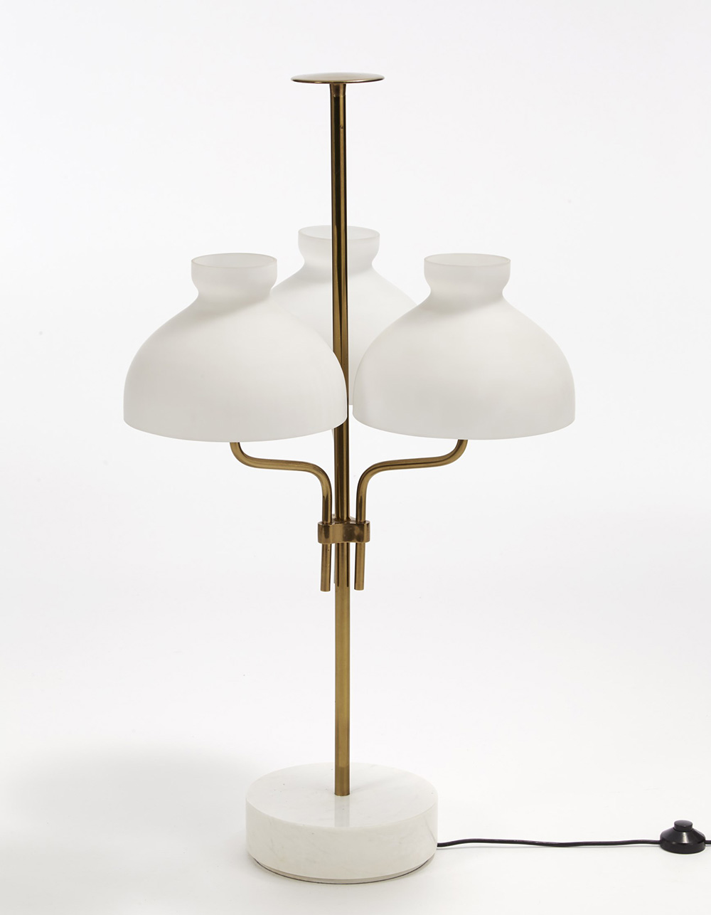 Ignazio Gardella (Milano 1905 - Oleggio 1999) Lampada da tavolo modello "LTA3B Arenzano". Produzione Azucena, Milano, 1963, esecuzione anni 70. Ottone, vetro incamiciato lattimo e base in marmo bianco (h cm 100) (lievi difetti) Bibliografia: Azucena mobili e oggetti, a cura di M. Imparato, F. Radaelli, S. Milesi, Azucena, Milano 2012, pp. 234-235 Table lamp model "LTA3B Arenzano". Designed by Azucena, Milan, 1963, produced 1970s. Brass, glass and white marble (h cm 100) (minor defects) Bibliography: Azucena mobili e oggetti, a cura di M. Imparato, F. Radaelli, S. Milesi, Azucena, Milano 2012, pp. 234-235