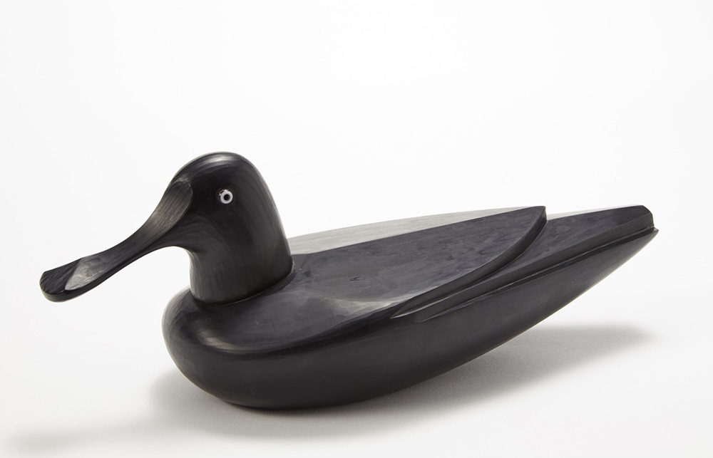 Toni Zuccheri ( 1937 ) "Anitra". Scultura in vetro massello nero battuto, testa scolpita alla mola. Esecuzione Venini, Murano anni 60. Iscritta a punta sotto la base "Venini TZ 2003/11" (h cm 13) (lievi difetti) "Anitra". Glass sculpture. Venini, Murano, 1960s. Signed under the base "Venini TZ 2003/11" (h cm 13) (minor defects)
