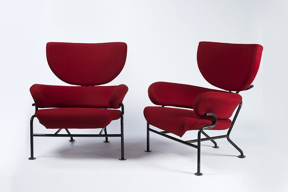 Franco Albini (1905 - 1977) e Franca Helg (1920 - 1989) Coppia di poltrone modello "PL19 Tre pezzi". Produzione Poggi, Pavia, 1959. Tubolare metallico verniciato nero, schienale e seduta imbottiti rivestiti in panno rosso (cm 82x94x75) (lievi difetti) Bibliografia: Catalogo "Domus", n. 371, ottobre 1960, p. 15; "Domus", n. 373, dicembre 1960, p. 21; Catalogo Poggi, [1973], s.p.; G. Gramigna, Repertorio del design italiano 1950-2000 per l'arredamento domestico, Allemandi, Torino 2003, vol. 1, p. 50; F. Bucci, F. Irace, Zero Gravity. Franco Albini. Costruire la modernit‡, Electa, Milano 2006, p. 123; G. Busone, F. Bucci, Il Design e gli interni di Franco Albini, Electa, Milano 2009, p. 106 A pair of armchairs model "PL19 Tre pezzi". Produced by Poggi, Pavia, 1959. Metal tubular, red fabric (cm 82x94x75) (minor defects) Bibliography: Catalogo "Domus", n. 371, ottobre 1960, p. 15; "Domus", n. 373, dicembre 1960, p. 21; Catalogo Poggi, [1973], s.p.; G. Gramigna, Repertorio del design italiano 1950-2000 per l'arredamento domestico, Allemandi, Torino 2003, vol. 1, p. 50; F. Bucci, F. Irace, Zero Gravity. Franco Albini. Costruire la modernit‡, Electa, Milano 2006, p. 123; G. Busone, F. Bucci, Il Design e gli interni di Franco Albini, Electa, Milano 2009, p. 106