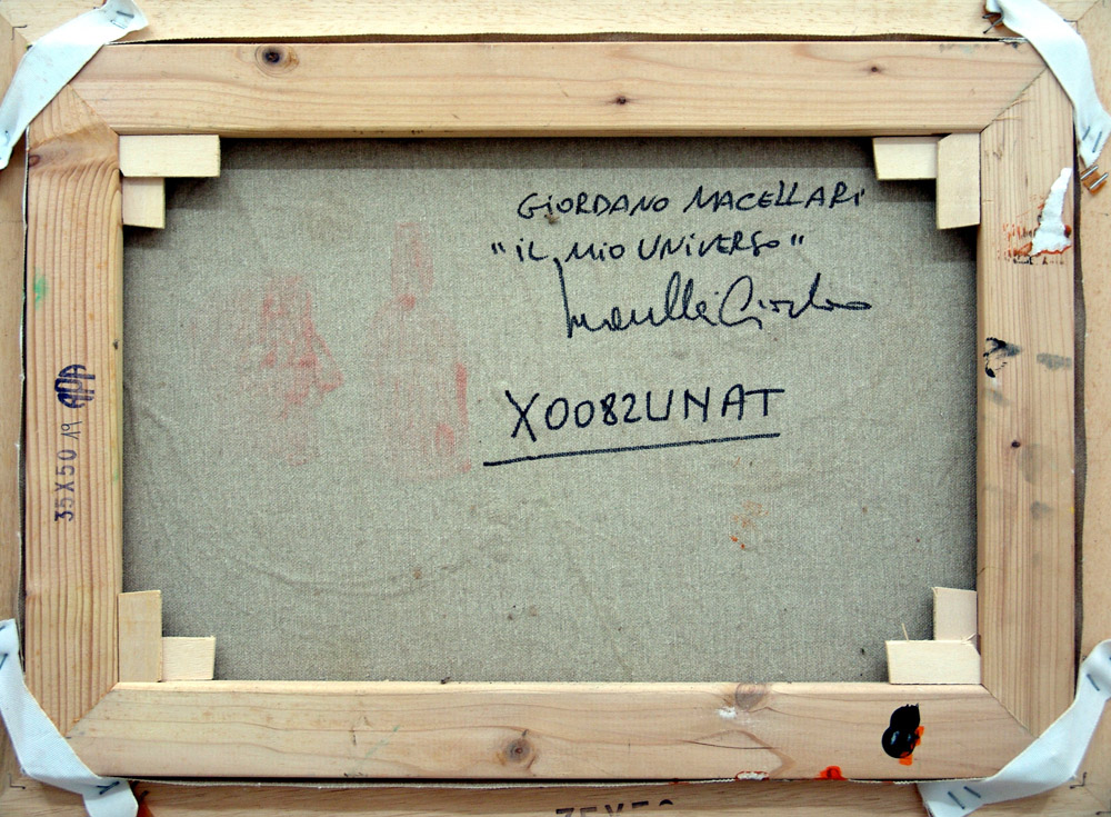 Giordano Macellari 1962, Potenza Picena (Mc) - [Italia] Il mio universo acrilico su tela 35x50 cm 1999 firma dell’artista in basso a destra e sul retro; opera con cornice certificato di autenticità firmato dall’artista