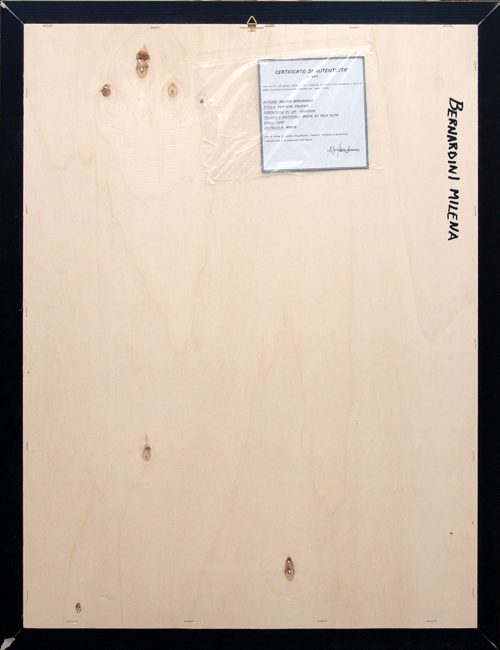 Milena Bernardini 1978, San Benedetto del Tronto (Ap) - [Italia] Vertical frozen tecnica mista su juta 70x50 cm 2016 firma dell’artista in basso a sinistra e sul retro; opera con cornice certificato di autenticità firmato dall’artista