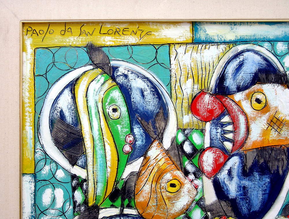 Paolo da San Lorenzo 1935, San Lorenzo in Campo (Pu) - [Italia] Acquario olio su tela 60x80 cm 2011 firma dell’artista in alto a sinistra e sul retro; opera con cornice certificato di autenticità firmato dall’artista