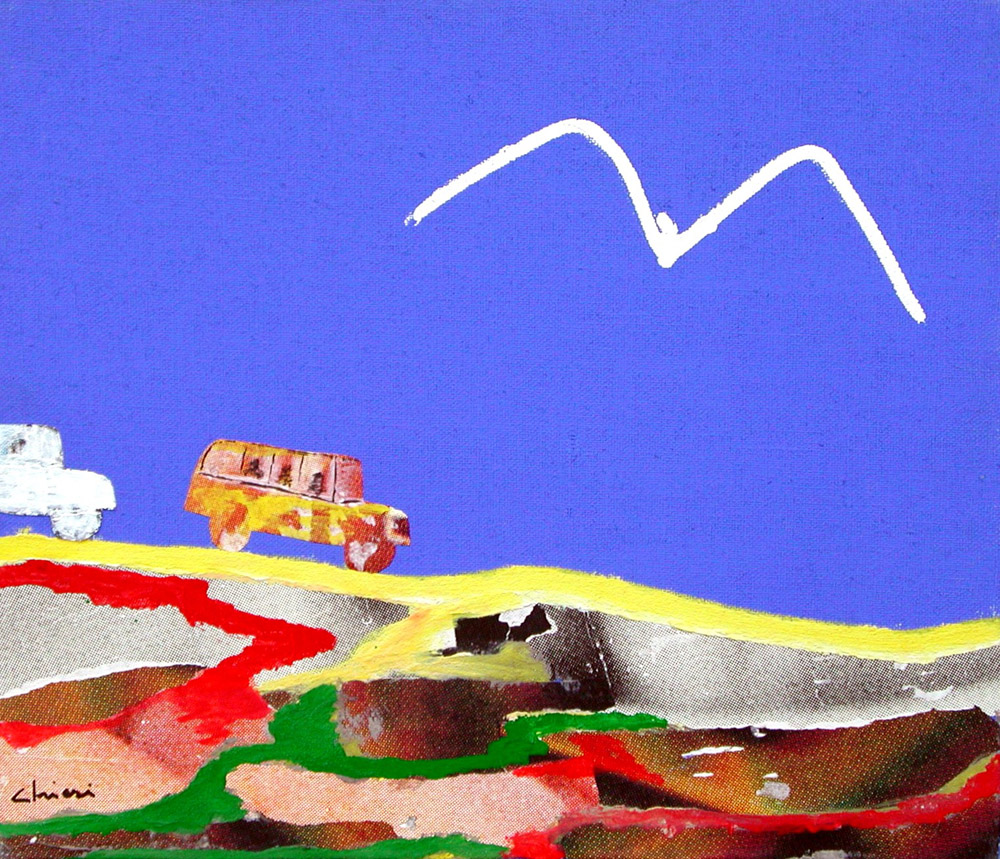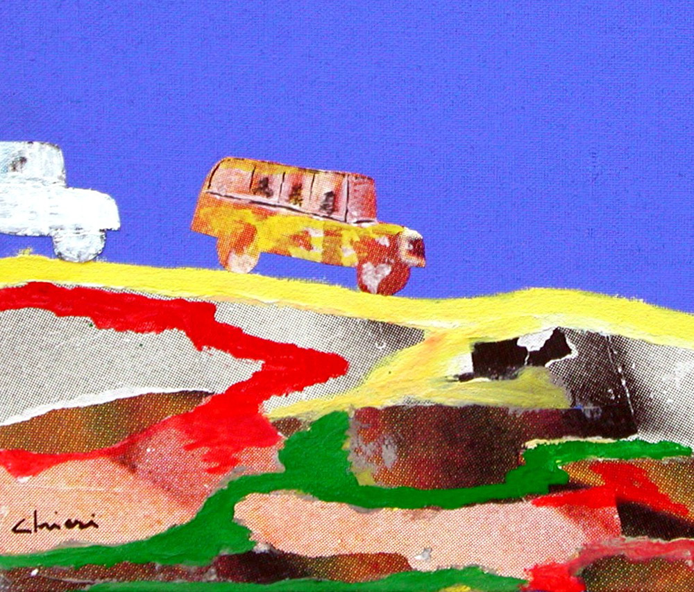Giorgio Chiesi 1941, Felina (Re) - [Italia] senza titolo olio e collage su tela 60x70 cm c. 2000 firma dell’artista in basso a sinistra; opera con cornice certificato dell'Archivio generale delle opere di Giorgio Chiesi